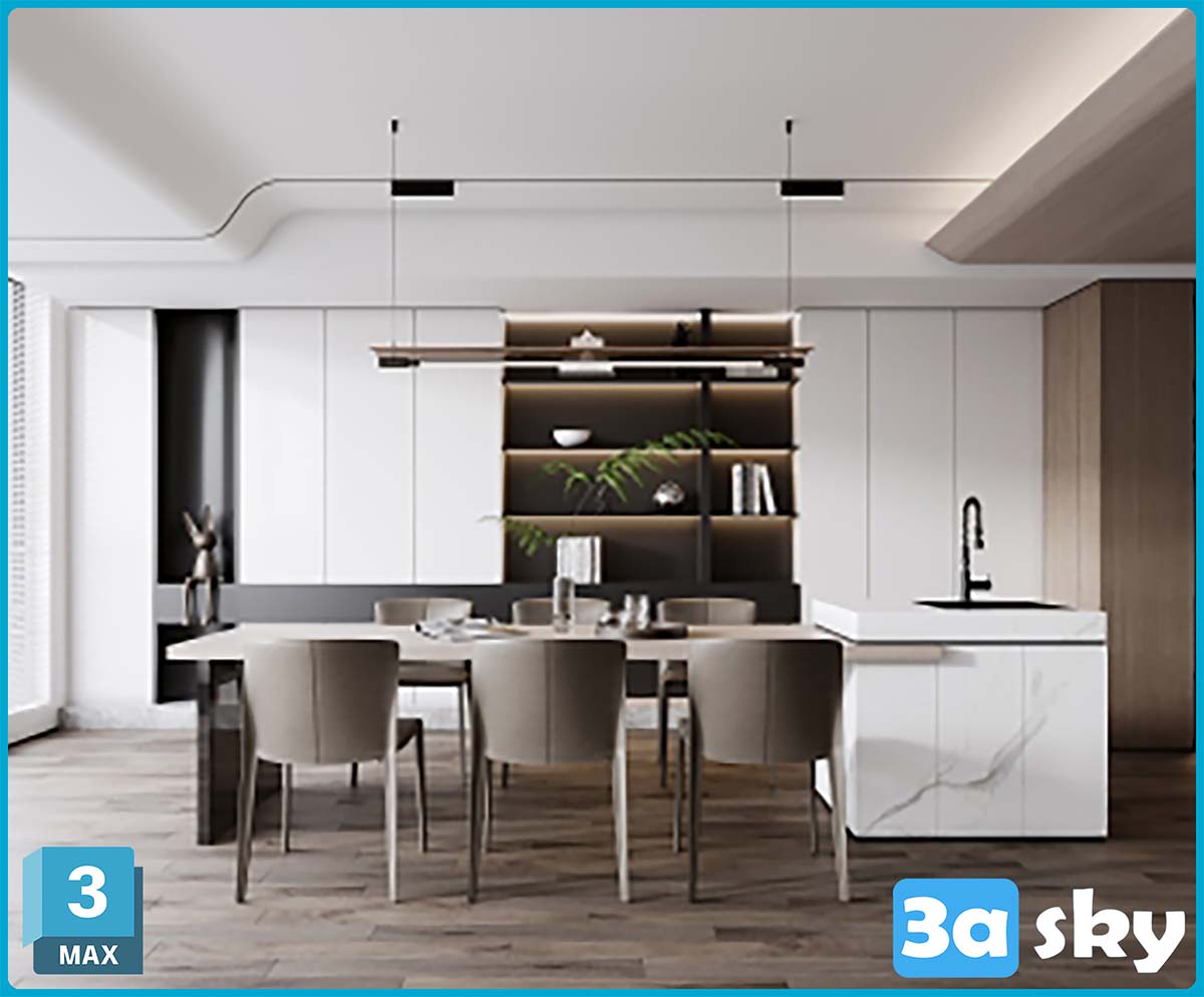 This 3D scene showcases a modern living room interior design with carefully selected furniture and decor. The contemporary layout and architectural elements create a stylish and inviting space for relaxation and entertainment.