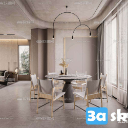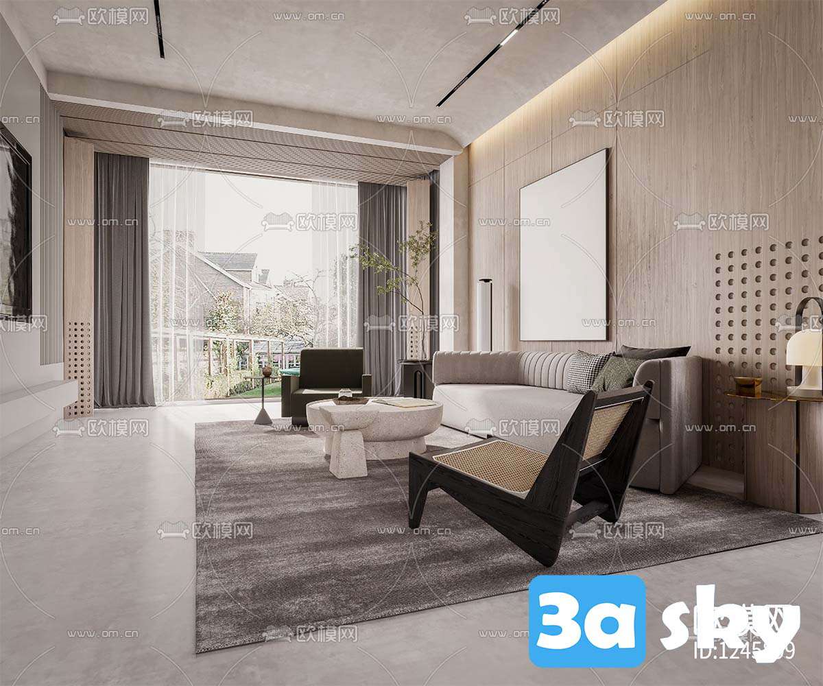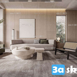 This 3D scene features a modern living room interior design with contemporary furniture and decor elements. The space is elegantly designed with a focus on comfort and style. Explore the details and get inspired for your own interior design projects.