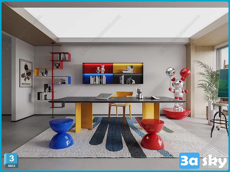 This 3D scene showcases a modern living room interior design with stylish furniture and decor. The room features a contemporary aesthetic with a focus on comfort and functionality. Explore the design details and layout in this preview image.