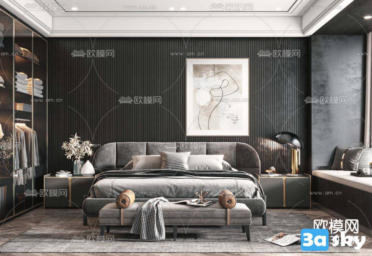 This 3D scene features a modern living room interior design with contemporary furniture and a stylish layout. The image provides a preview of the detailed 3D model created in 3DS MAX or 3D SCENES software. Explore the design elements and get inspired for your own interior design projects.