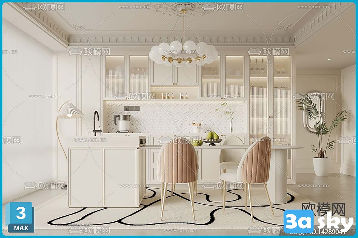 V_14289041奶油风餐厅法式餐厅模型.rar