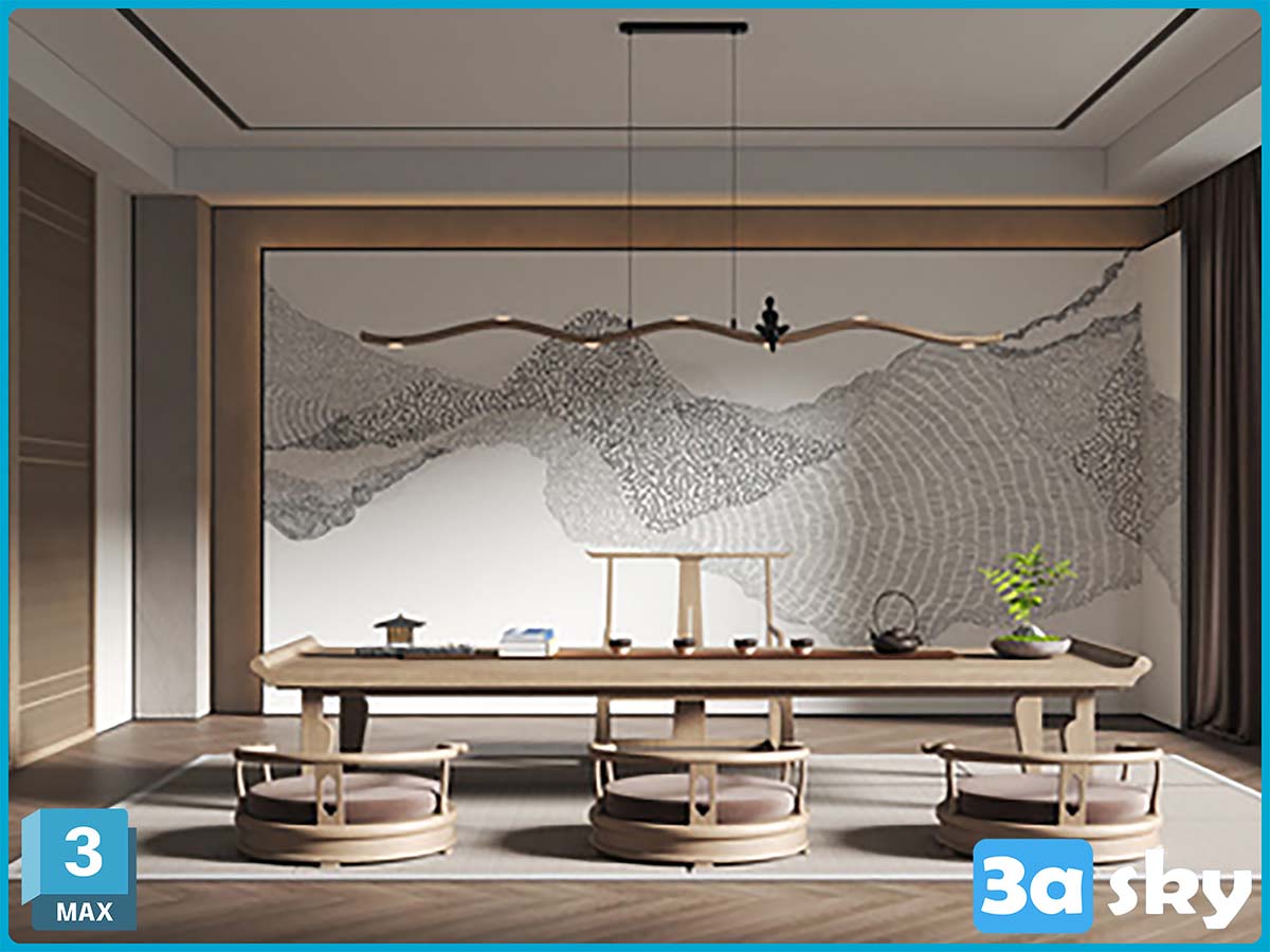 This 3D scene showcases a modern living room interior design with contemporary furniture and decor. The room features a stylish layout with a focus on comfort and aesthetics. Explore the details of the furniture pieces and decor elements in this visually appealing setting.