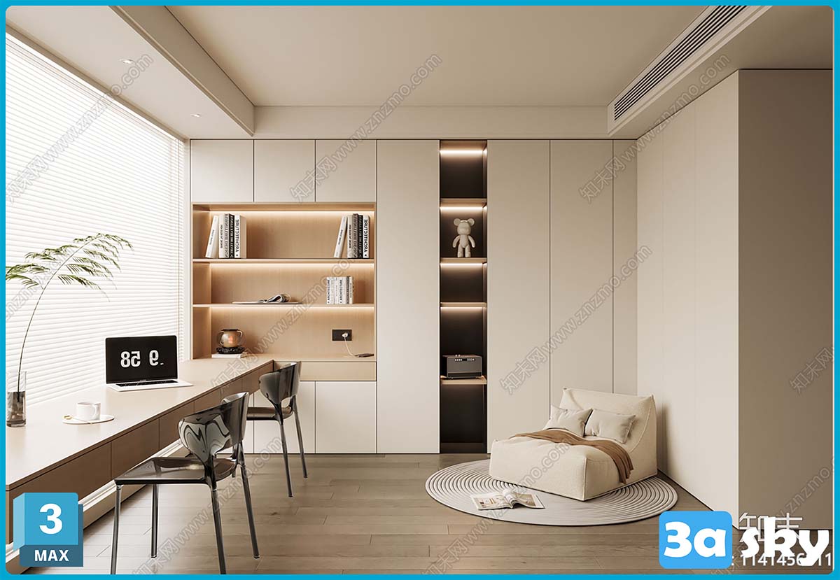 V_CR现代奶油风书房3D模型ID_1141456811.7z