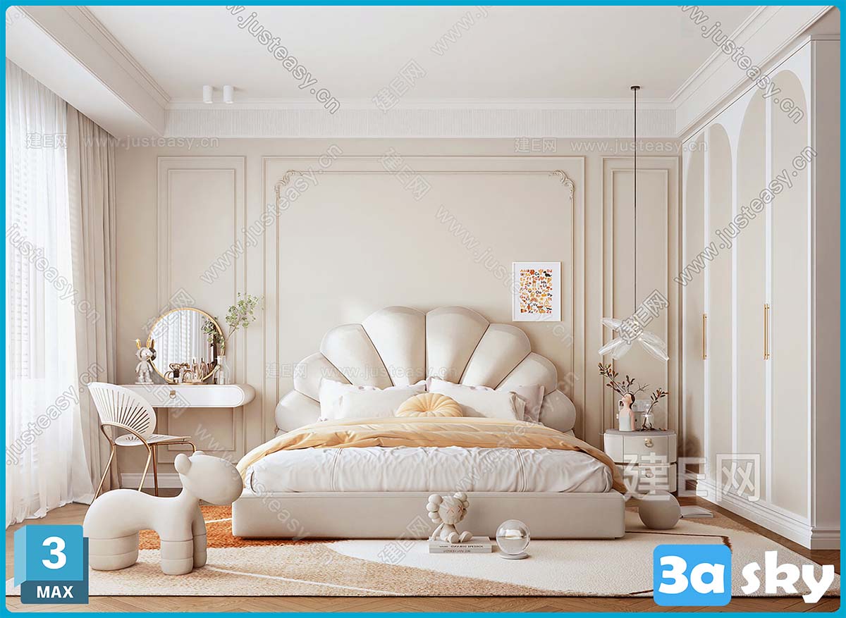 V_简欧奶油风卧室3d模型ID-12133842.rar