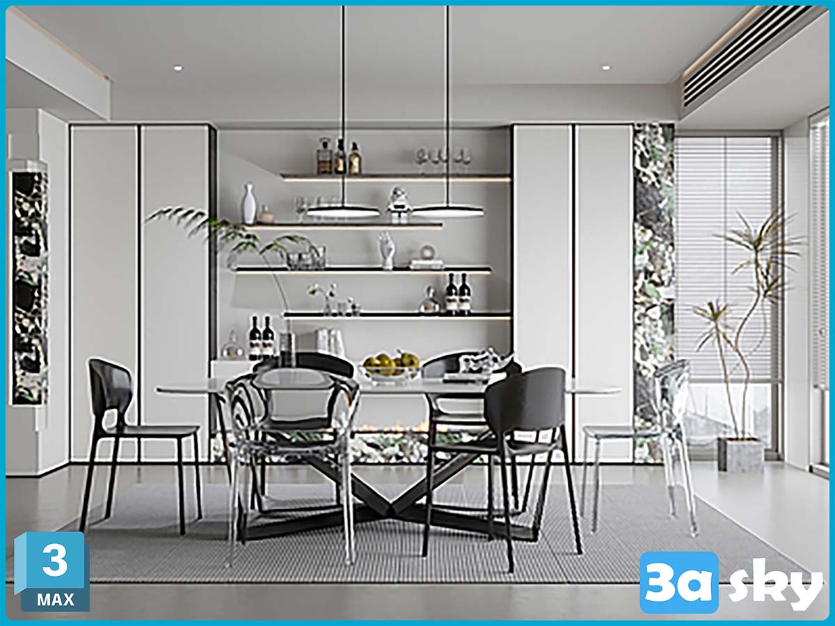 V_现代极简餐厅3d模型ID-12233414.rar