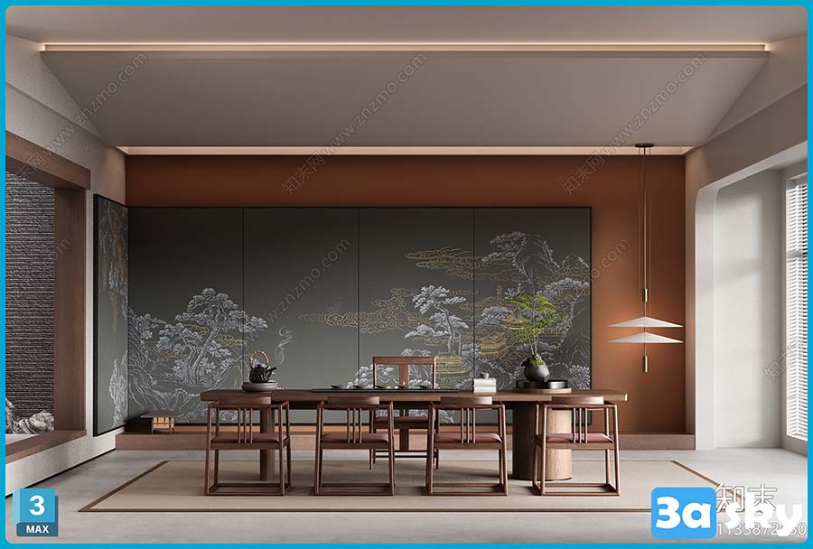 This 3D scene showcases a modern living room interior design with contemporary furniture and decor. The room features a stylish layout with a focus on comfort and aesthetics. Explore the details of the furniture pieces and decor elements in this visually appealing setting.
