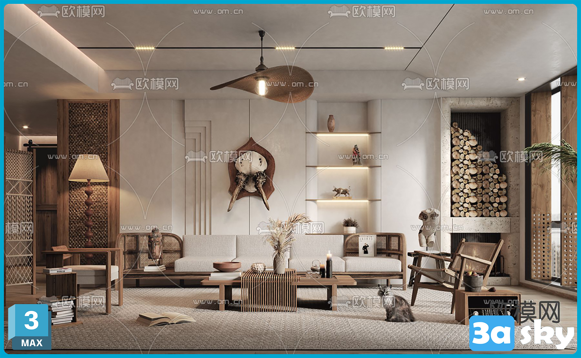 This 3D scene showcases a modern living room interior design with a focus on contemporary style and functionality. The room features stylish furniture, modern decor elements, and a harmonious color palette. Explore the perfect blend of aesthetics and practicality in this captivating 3D visualization.