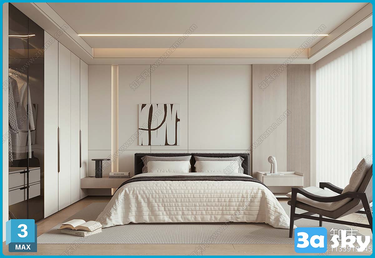 This 3D scene showcases a modern living room interior design with stylish furniture and decor. The room features a contemporary aesthetic with a focus on comfort and functionality. Explore the design details and layout in this preview image.