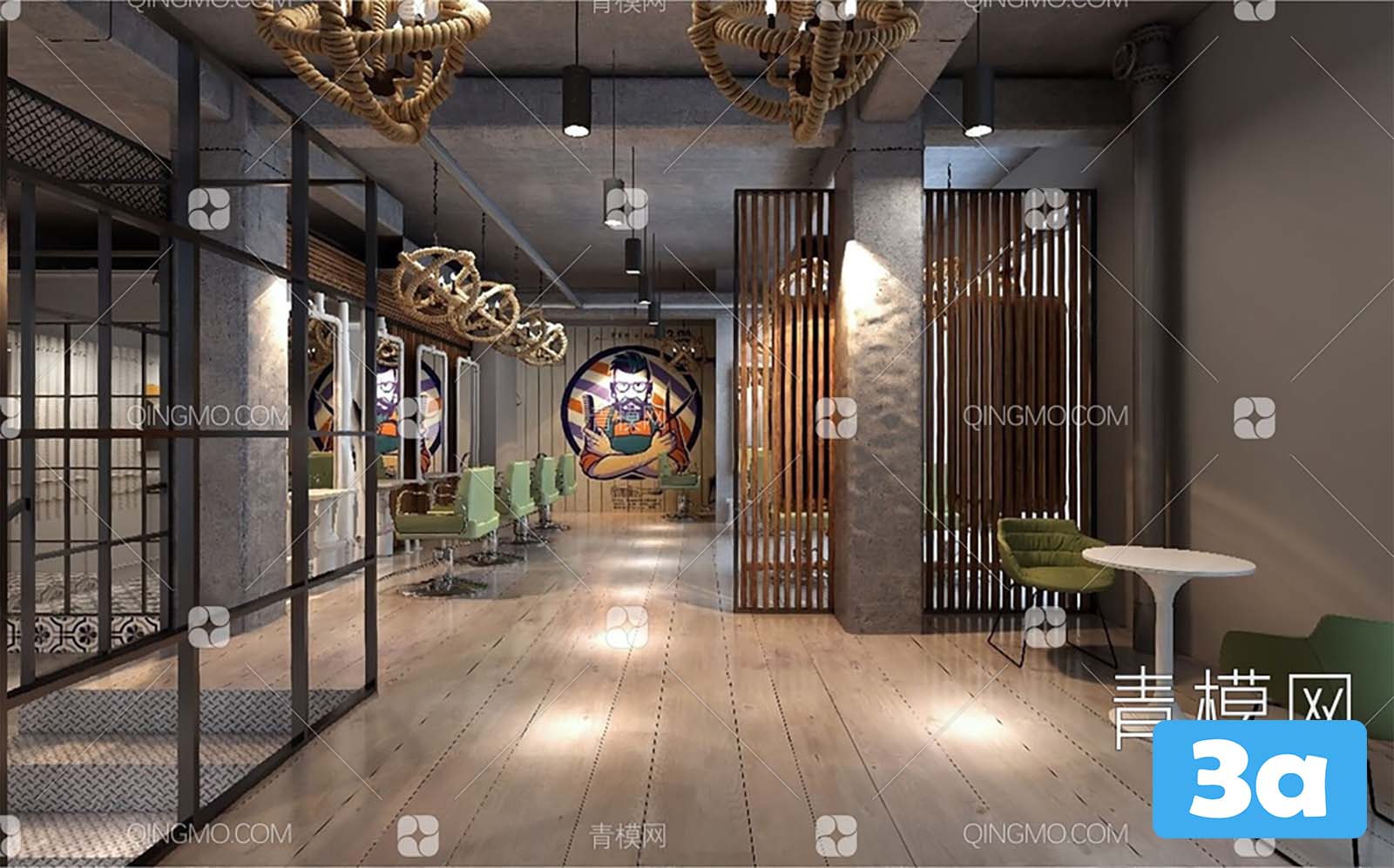 This 3D scene showcases a modern salon interior design with a contemporary layout and stylish decor. Explore the preview to get inspired by the elegant and trendy elements in this salon setting.