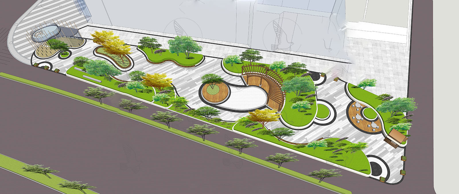 This 3D scene showcases a park share design in SketchUp. The detailed layout and design elements create a beautiful outdoor space that is perfect for inspiration and visualization. Explore the intricate details of this park share and get ideas for your own outdoor projects.