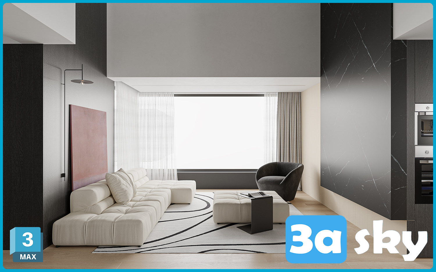 This image showcases a preview of a 3D scene created using 3DS MAX. The scene features detailed design elements and realistic textures, providing a glimpse into the world of architectural visualization. Explore the intricate details and creative composition of this 3D scene.
