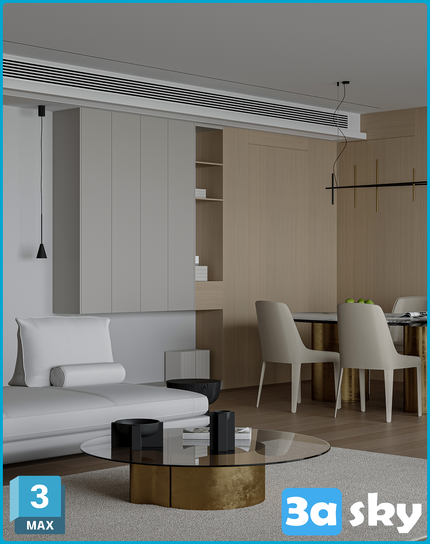 This image showcases a preview of a 3D scene created in 3DS MAX. The scene features detailed design elements and visualizations, offering a glimpse into the world of architecture and interior design. Explore the intricate details and creative concepts captured in this captivating image.