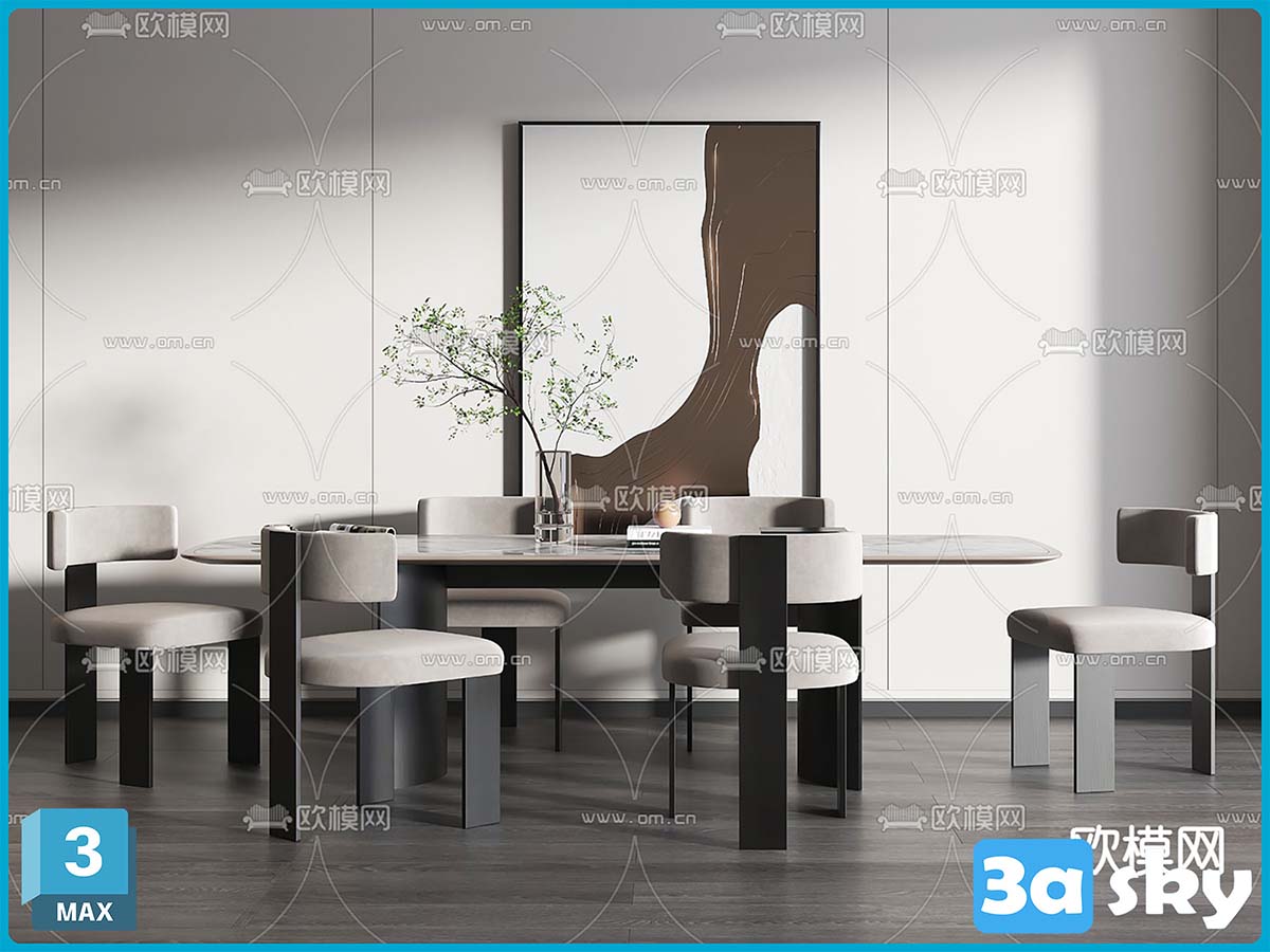 V_14254949条形餐桌椅模型.rar