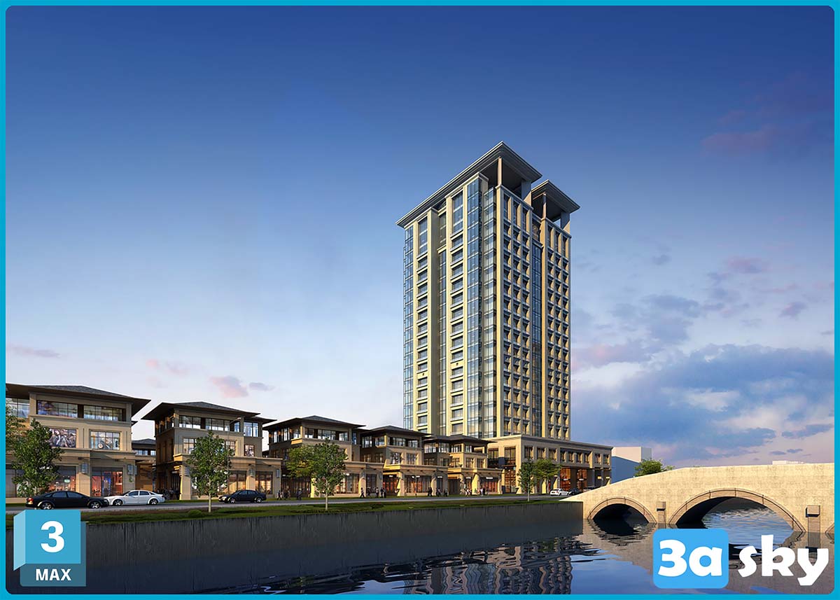 This 3D scene showcases a beautifully crafted architectural design rendered in 3DS MAX. The attention to detail in the modeling and lighting brings a sense of realism to the scene, making it a visually stunning representation of architectural visualization. Explore the intricate details and expert craftsmanship in this 3D rendering.
