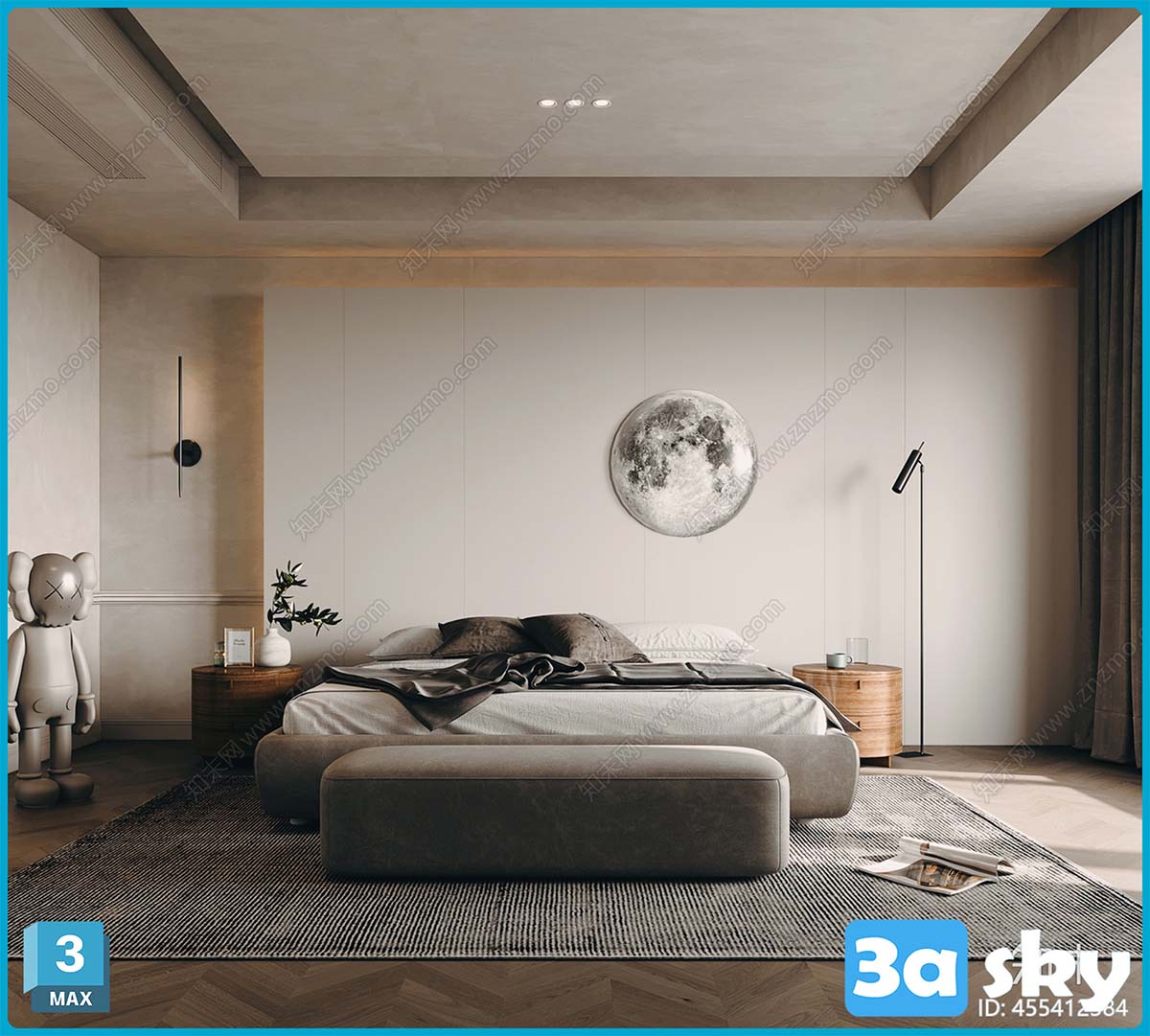 V_现代卧室 落地灯 壁灯 床 床尾凳3D模型ID_455412384.zip