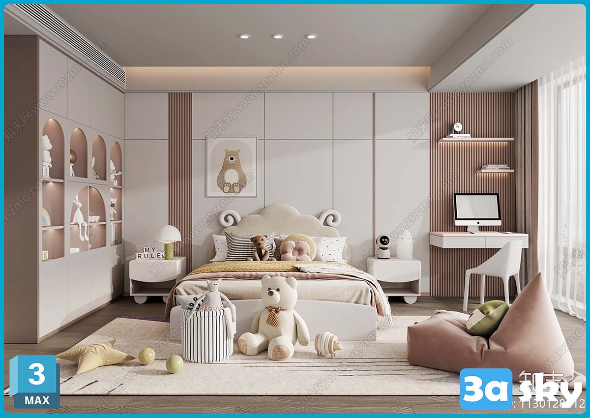 V_VR现代儿童房女孩房小孩房3d模型ID-13035636.zip