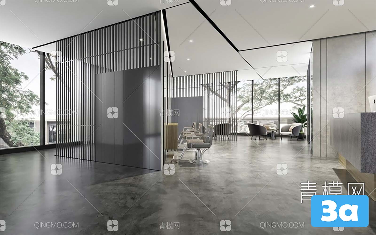 This 3D scene showcases a salon interior design with a modern and stylish decor. The space is elegantly furnished with contemporary furniture and accessories, creating a welcoming and trendy atmosphere. Explore this 3D model to get inspired for your own interior design projects.