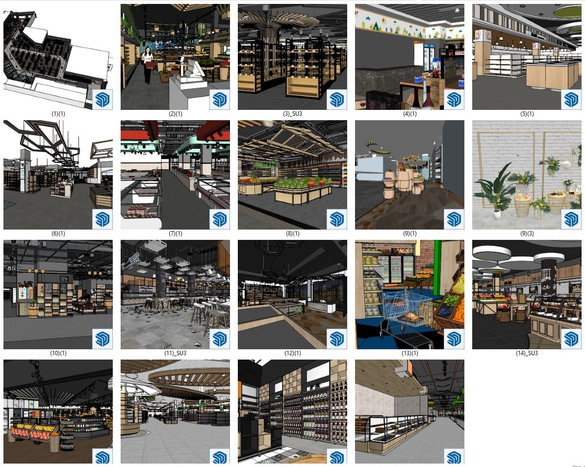 This 3D scene showcases a modern shopping mall with detailed architecture and interior design. The scene features a spacious layout with various shops and stores, creating a vibrant and bustling commercial environment. Perfect for architectural visualization and interior design projects.