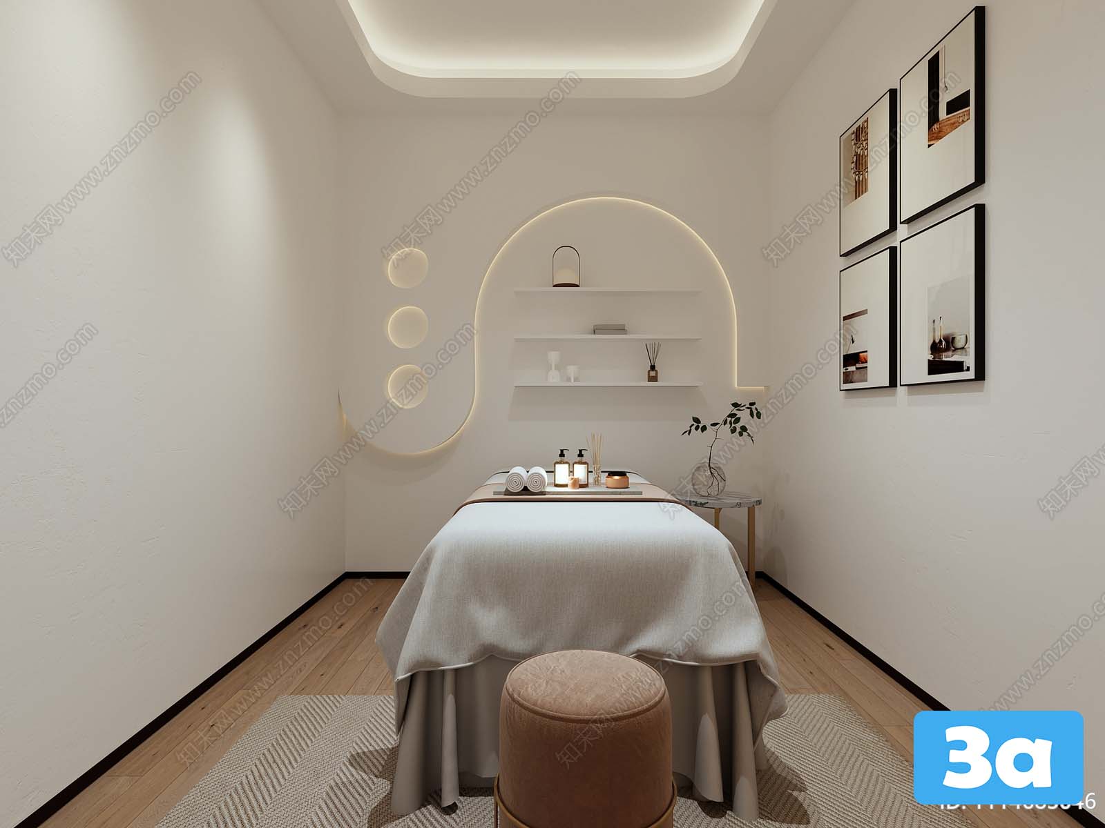 This 3D scene depicts a luxurious spa environment with a focus on relaxation and tranquility. The design features intricate details such as soothing lighting, comfortable seating, and lush greenery. Immerse yourself in this serene ambiance and let your mind wander to a place of calm and rejuvenation.