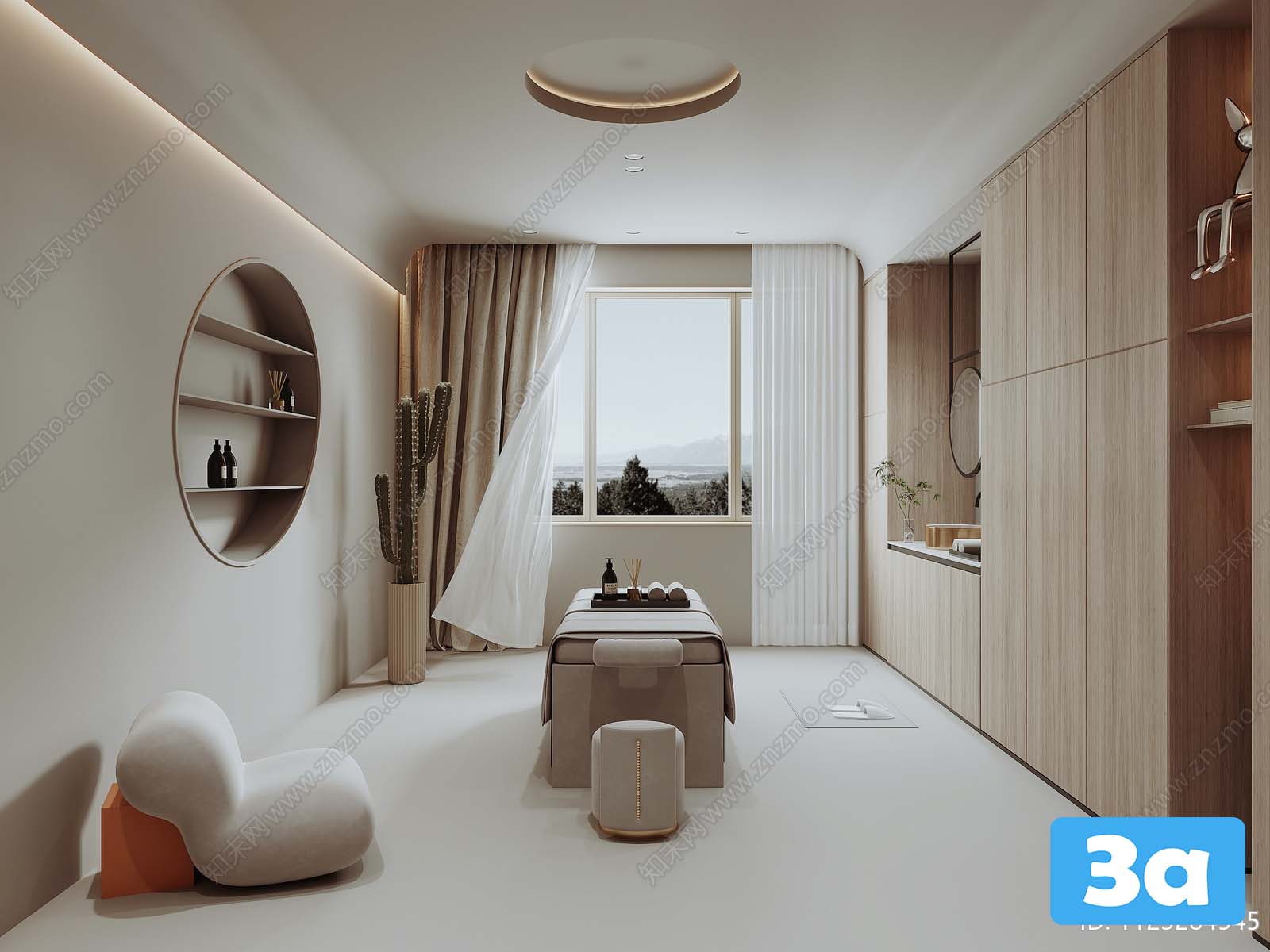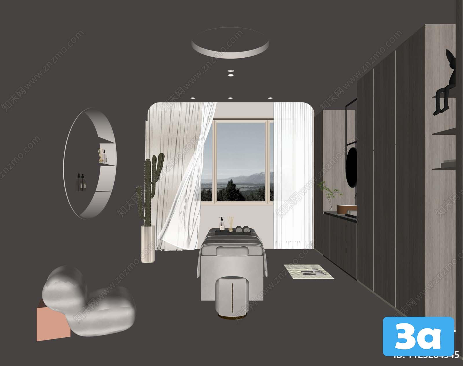 This 3D scene showcases a spa environment designed for relaxation and rejuvenation. The scene features intricate details and a serene setting, perfect for inspiring a sense of calm and tranquility. Explore the beauty of this visualization and immerse yourself in a world of relaxation.