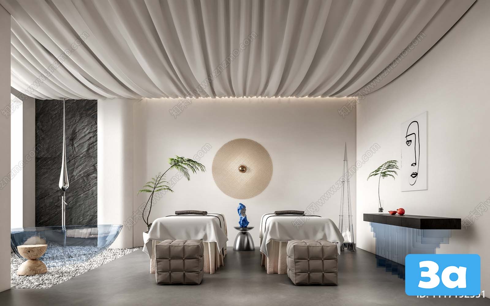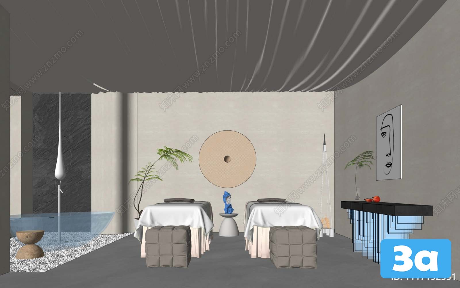This 3D scene spa file features a beautifully designed spa environment, perfect for relaxation and rejuvenation. The visualization captures the essence of a serene spa atmosphere with intricate details that create a tranquil setting. Explore the space and get inspired by the calming ambiance of this spa scene.