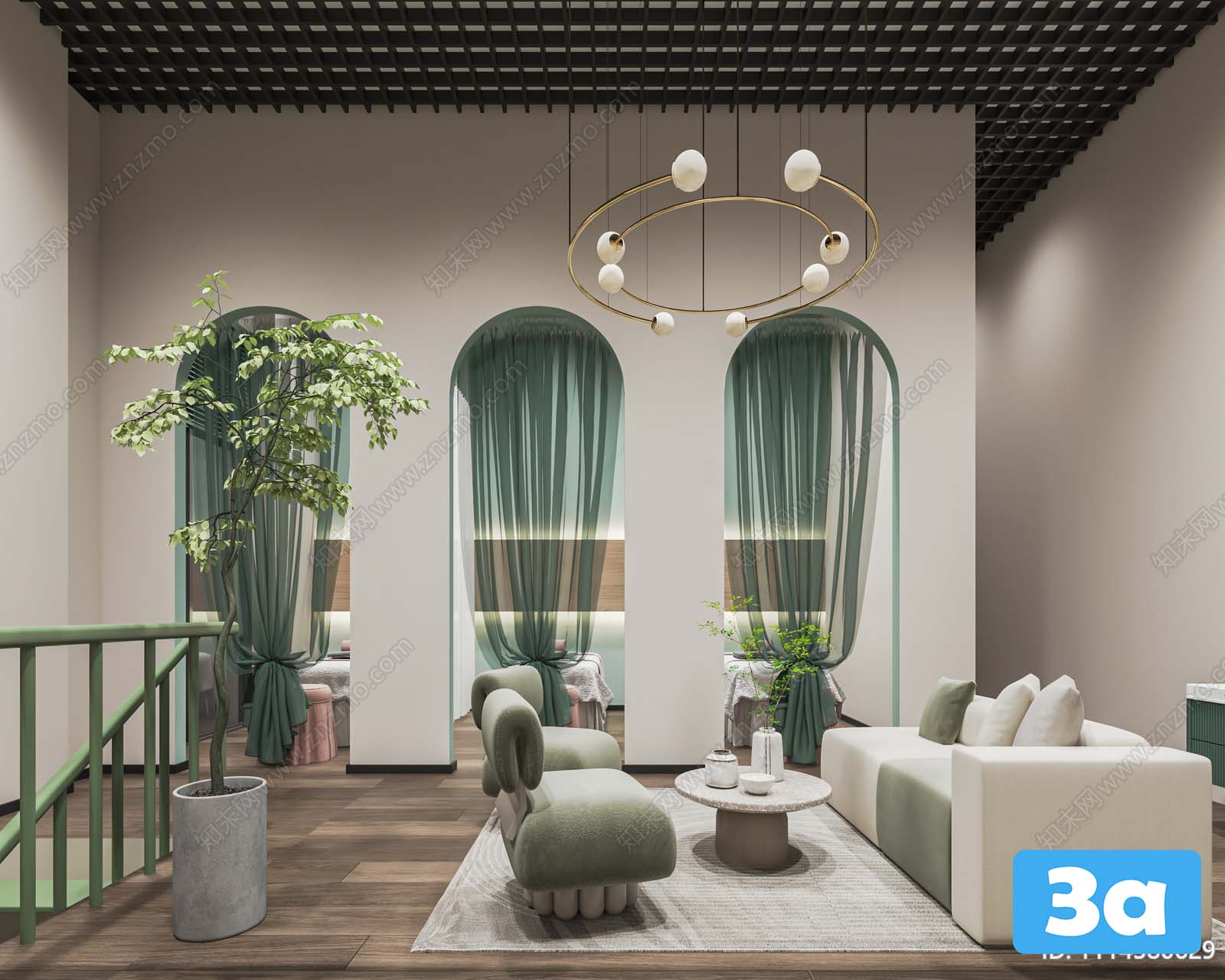 This 3D scene depicts a luxurious spa environment with a focus on relaxation and tranquility. The intricate details and serene ambiance create a visually appealing space for unwinding and rejuvenation. Explore this stunning visualization to inspire your own spa design projects.