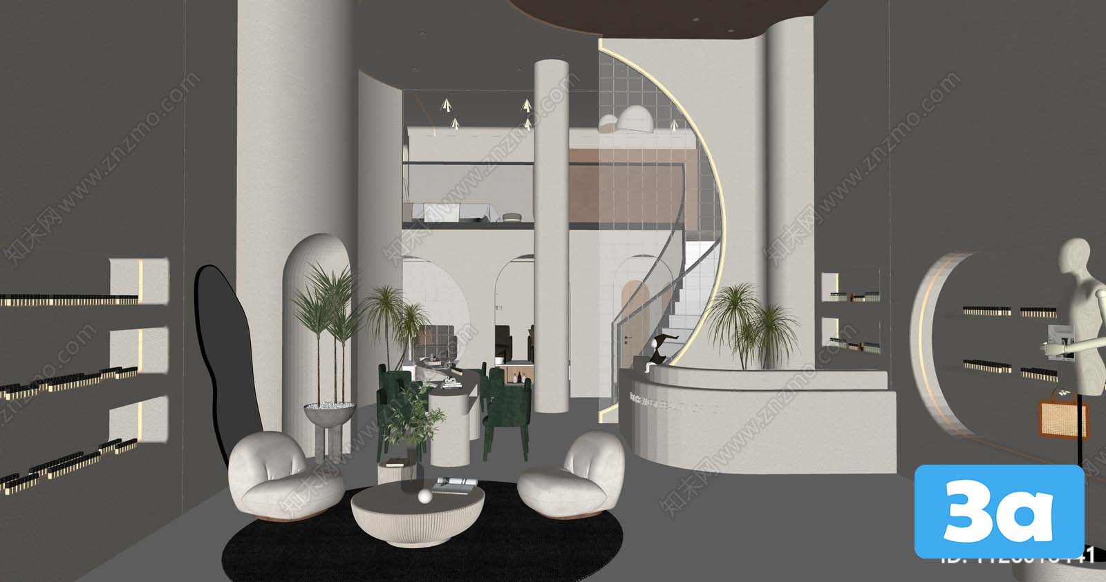 This 3D scene depicts a spa environment designed for relaxation and tranquility. The visualization captures the serene atmosphere of a spa, with detailed elements that enhance the overall experience. Explore this 3D scene to immerse yourself in a calming and peaceful setting.