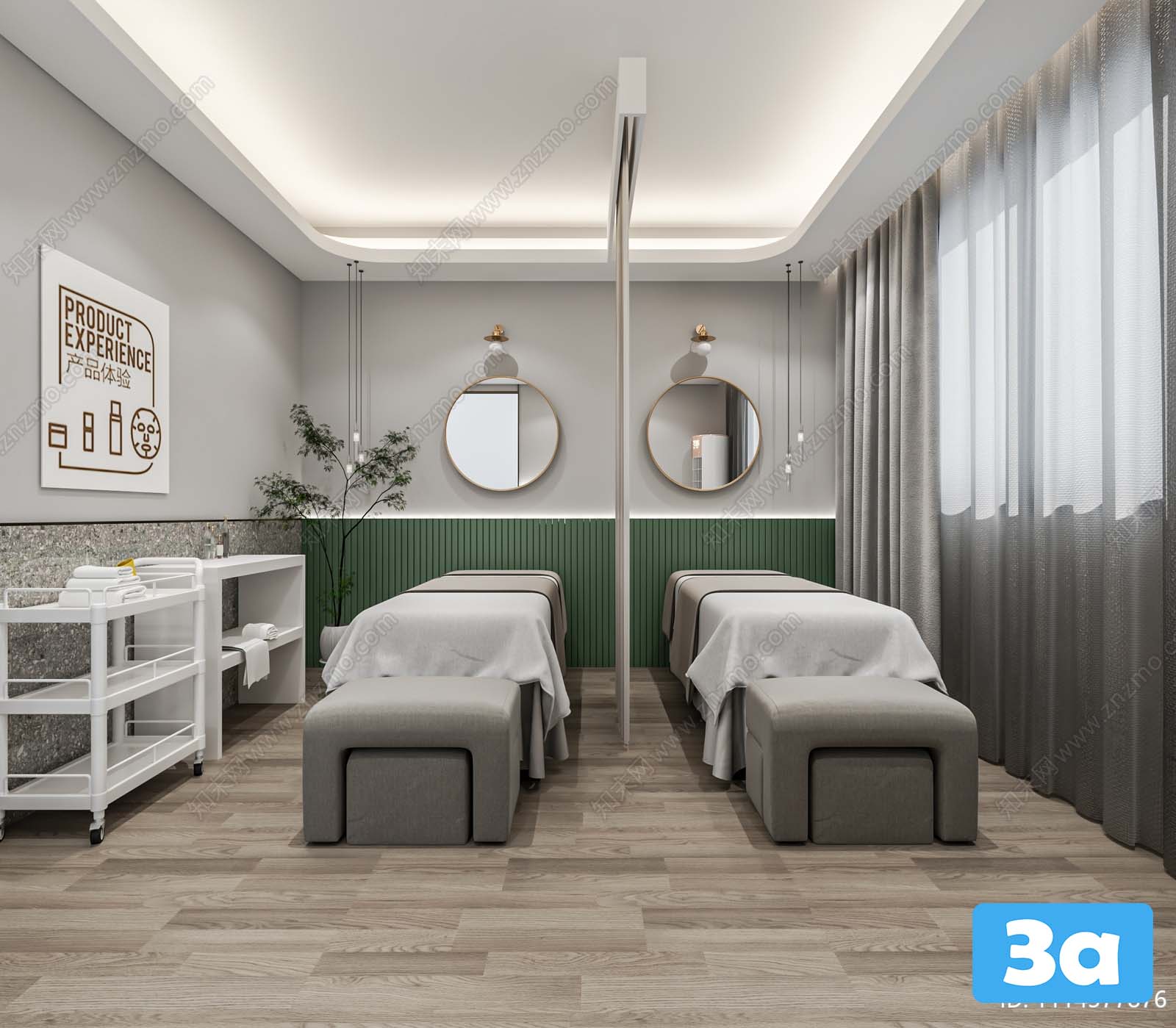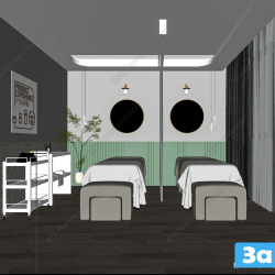 This 3D scene showcases a spa environment designed for relaxation and rejuvenation. The serene setting and intricate details create a perfect space for unwinding and pampering yourself. Explore the beauty of this spa visualization and get inspired for your own interior design projects.
