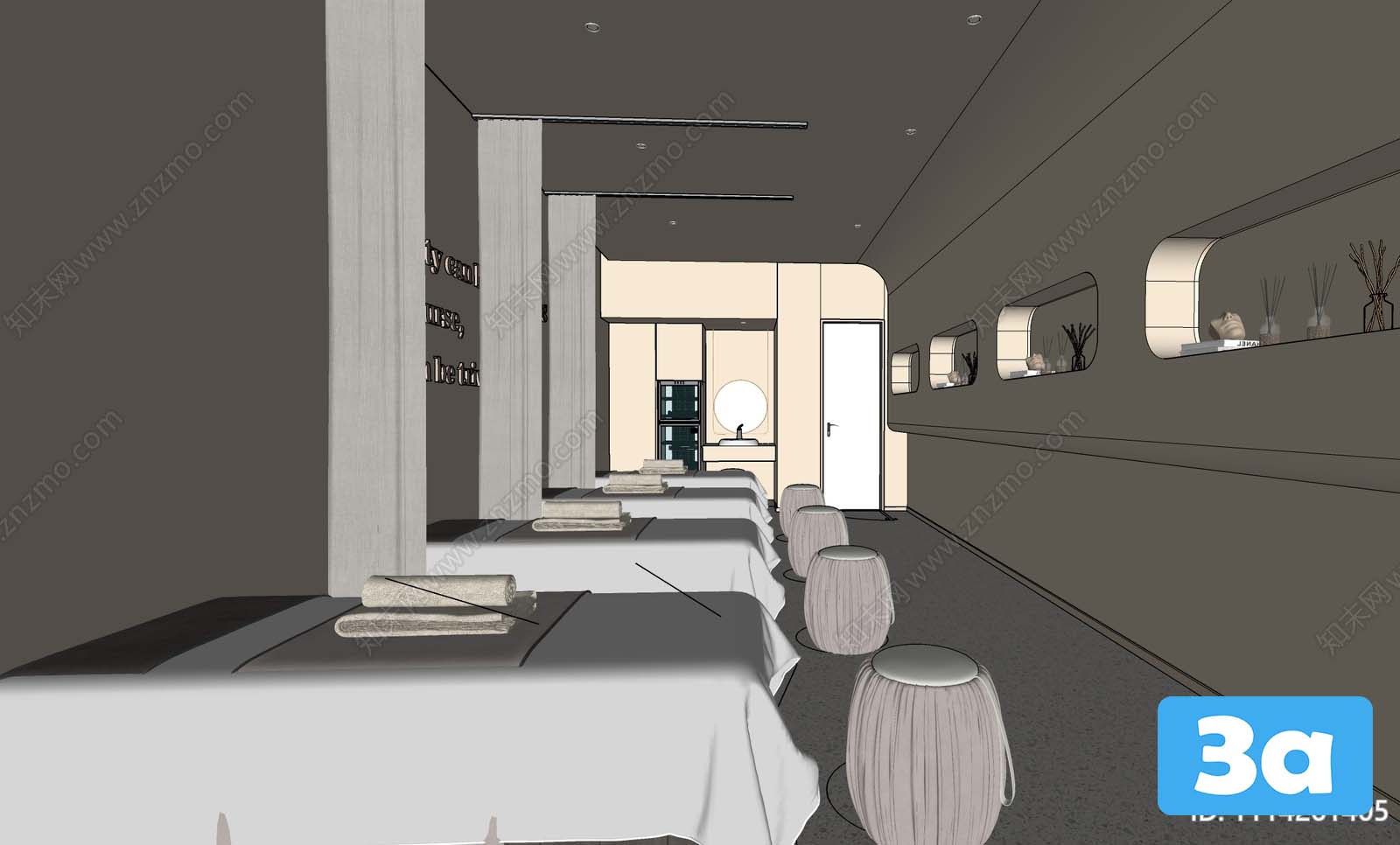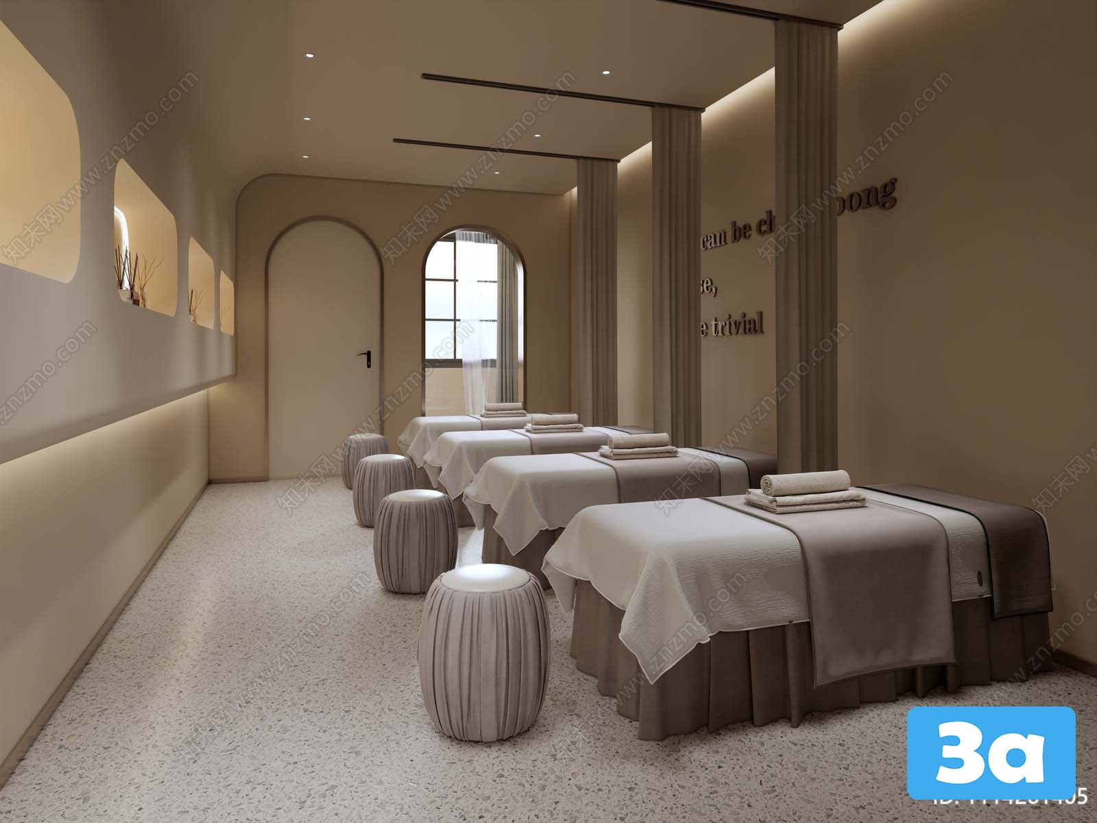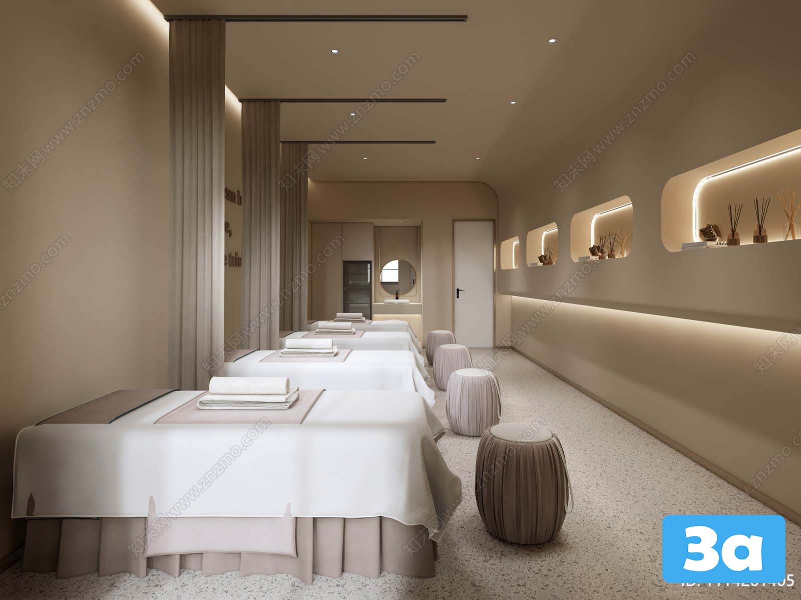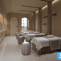 This 3D scene showcases a spa environment designed for relaxation and rejuvenation. The serene setting and intricate details create a perfect space for unwinding and pampering yourself. Explore the beauty of this spa visualization and get inspired for your own interior design projects.