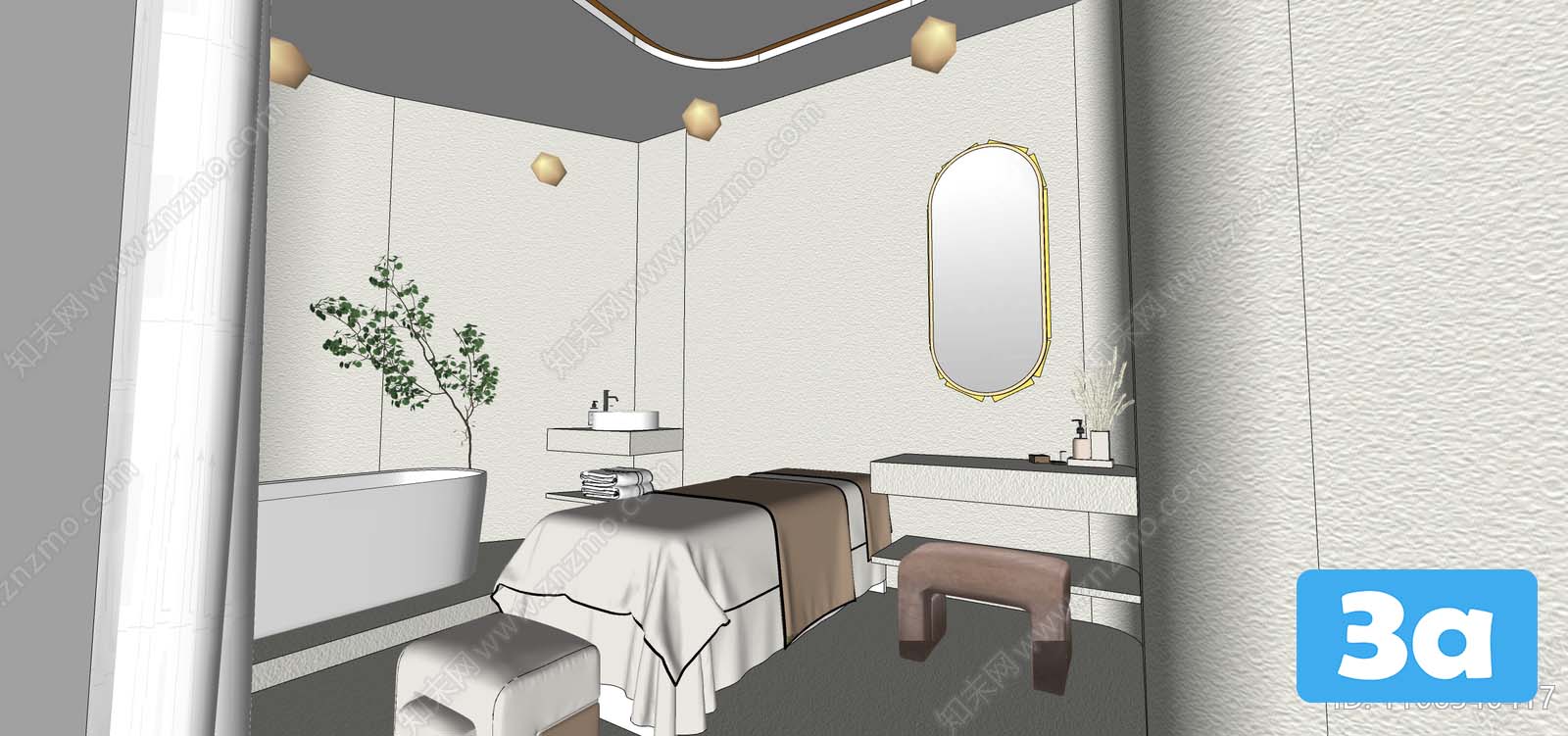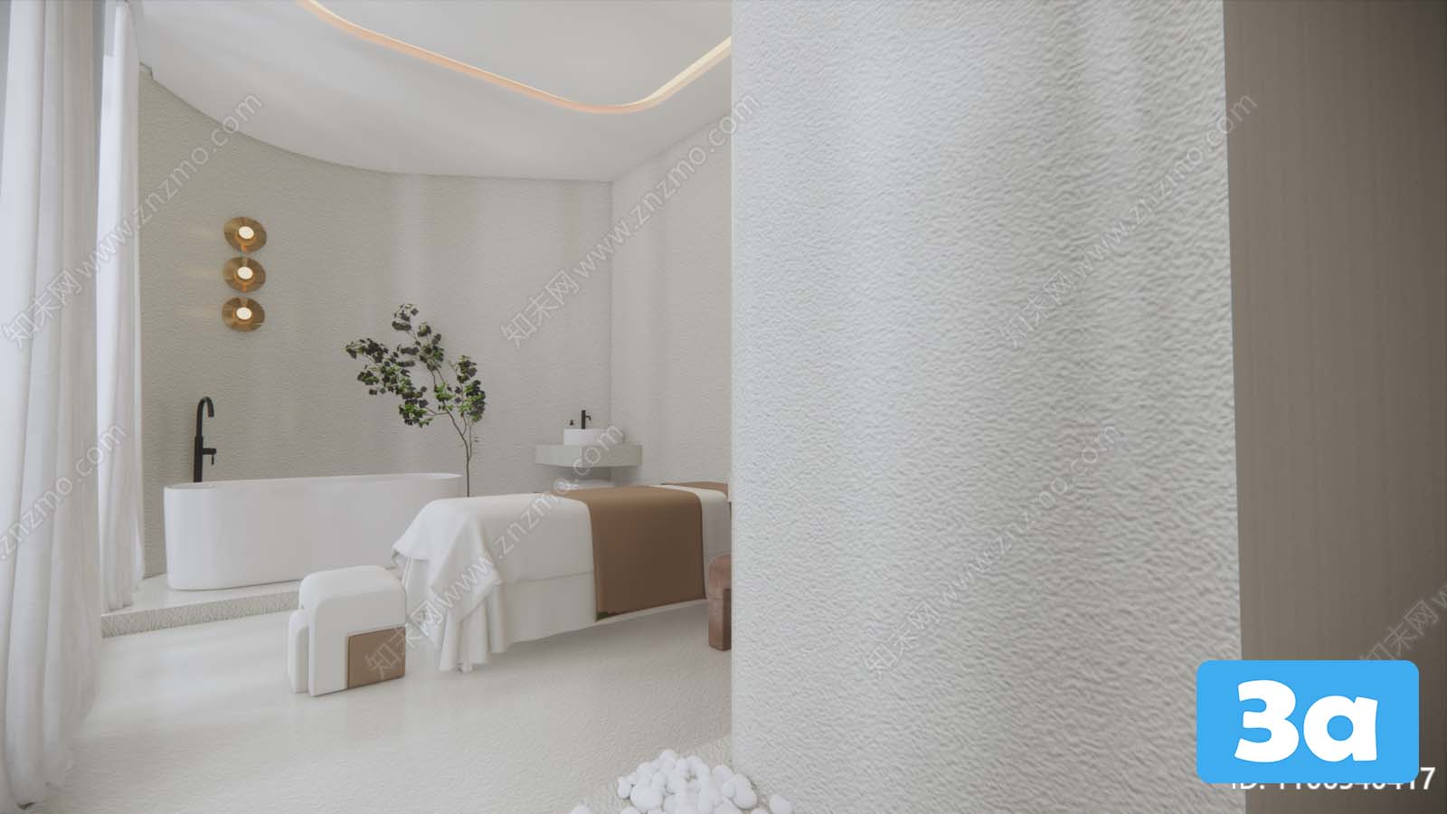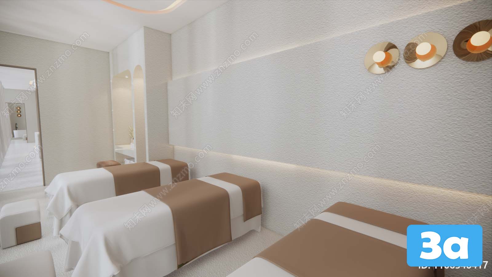 This 3D scene depicts a spa environment with a focus on creating a relaxing and serene ambiance. The visualization showcases intricate details such as lighting, textures, and decor elements. Immerse yourself in this tranquil space and get inspired for your own spa design projects.