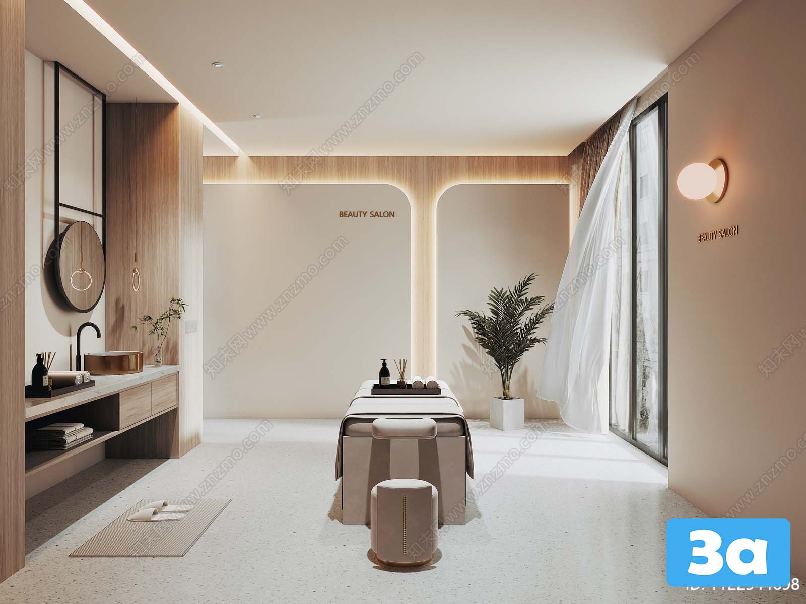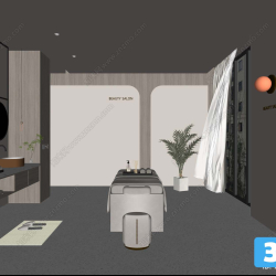 This 3D scene depicts a luxurious spa environment with a focus on relaxation and tranquility. The intricate details of the spa setting create a serene ambiance, inviting viewers to immerse themselves in a world of calm and rejuvenation. From the soothing color palette to the carefully curated decor, this visualization captures the essence of a peaceful spa experience.