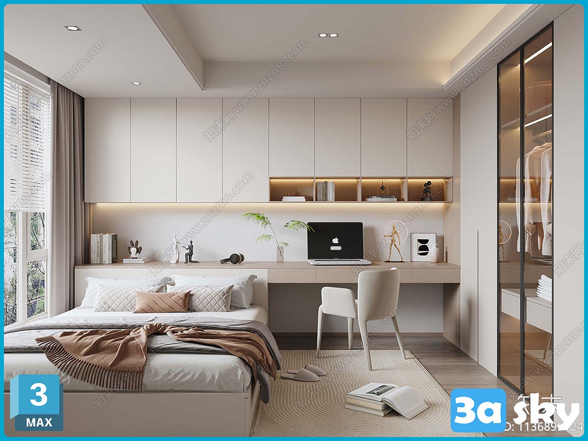 V_VR现代榻榻米卧室3D模型ID_1136899124.rar