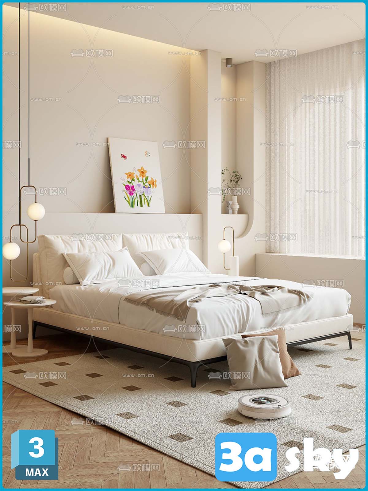F_VR60奶油风双人床3d模型ID-14310949.rar