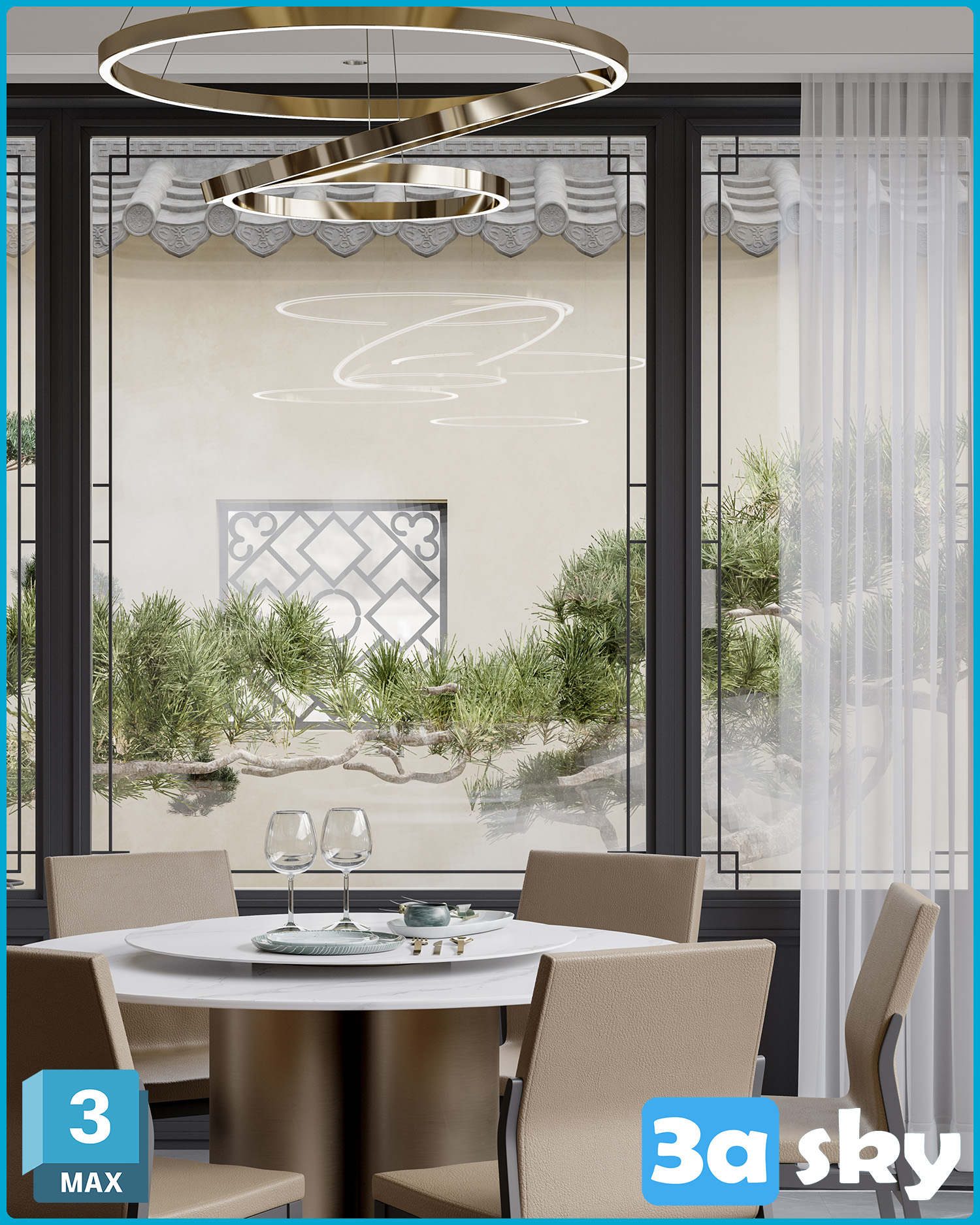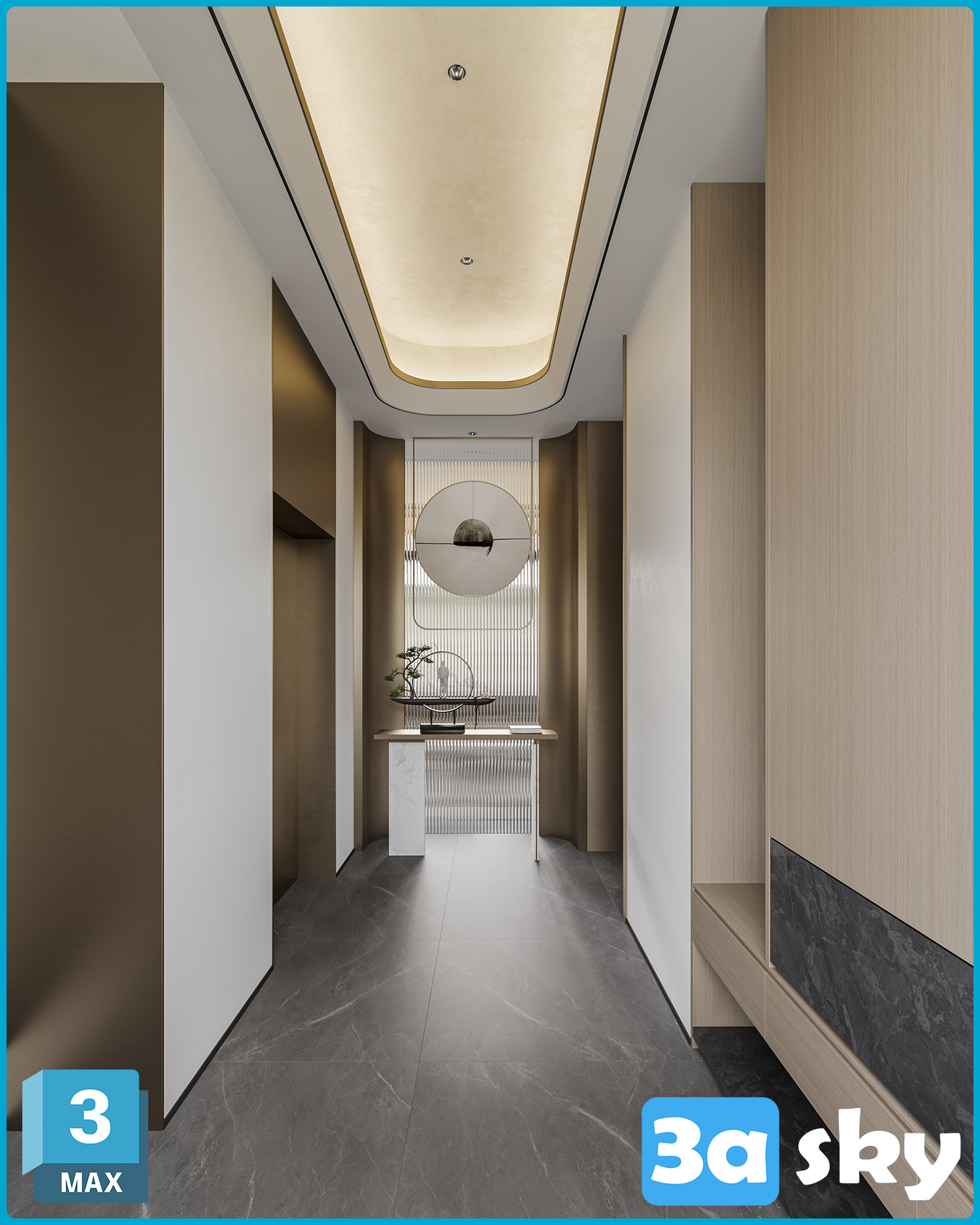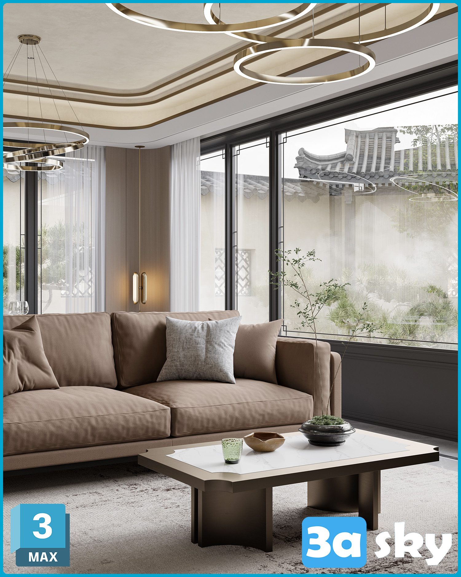 This 3D scene showcases a modern living room interior design with contemporary furniture and stylish decor. Explore high-quality 3D models and scenes in our library for your architectural and interior design projects.