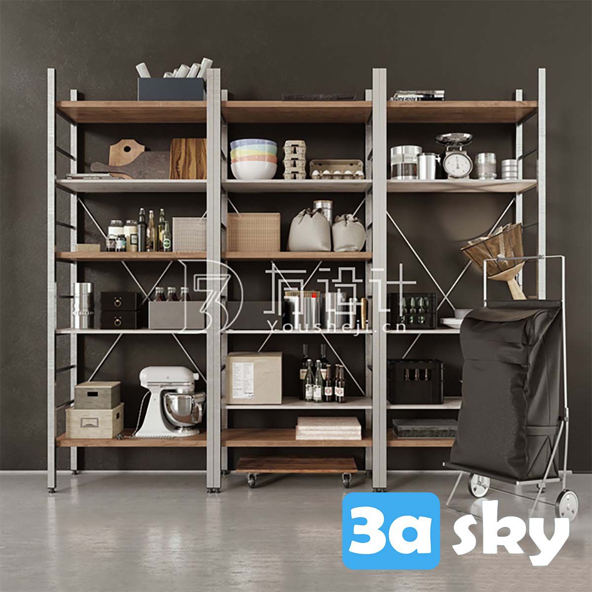 This 3D model showcases a beautifully designed kitchen decor set created using 3DS MAX. It includes various elements such as cabinets, shelves, and decorative items. Ideal for interior designers and architects looking to enhance their projects with realistic 3D assets.