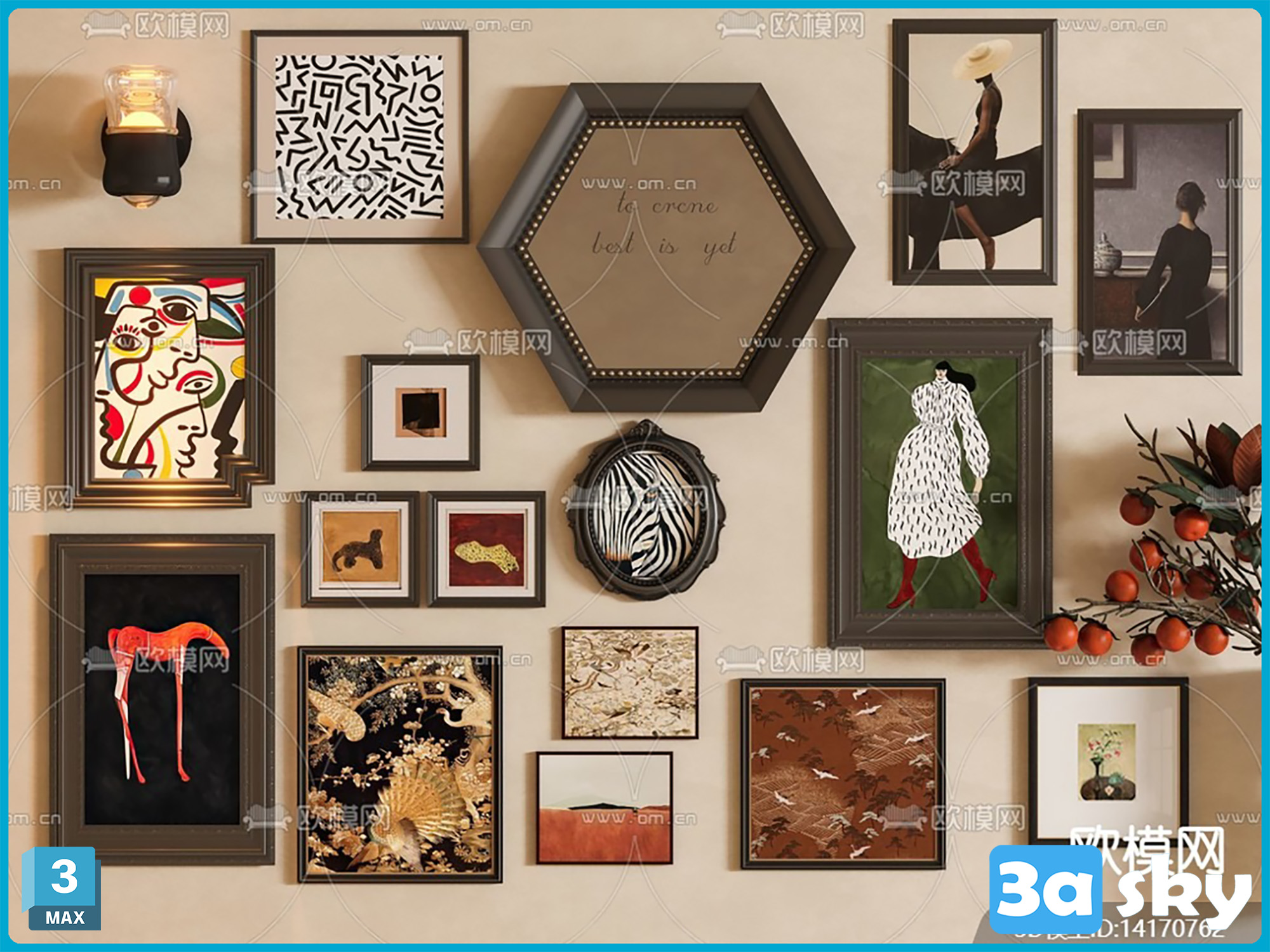 V_中古风装饰画 艺术画 挂画3d模型 ID-14170762.rar