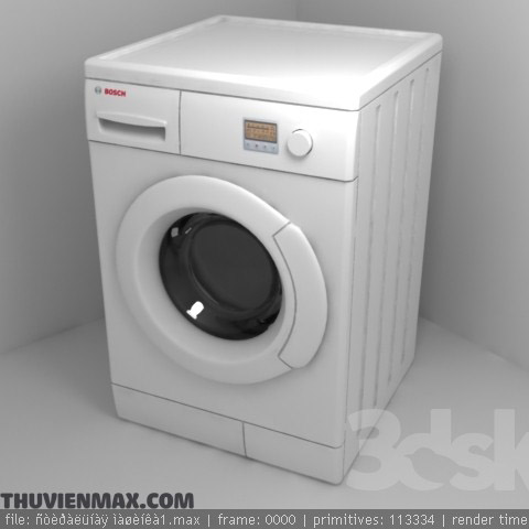 This image showcases a detailed preview of a washing machine created using 3DS MAX software. The design features intricate details and a realistic representation of a modern appliance. Perfect for interior design enthusiasts and 3D modeling professionals.