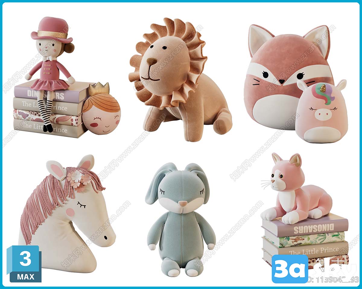 F_VR儿童毛绒玩具_摆件组合_布艺玩具_动物玩偶_小狮子玩具_小猪抱枕3D模型ID_1139042293.zip