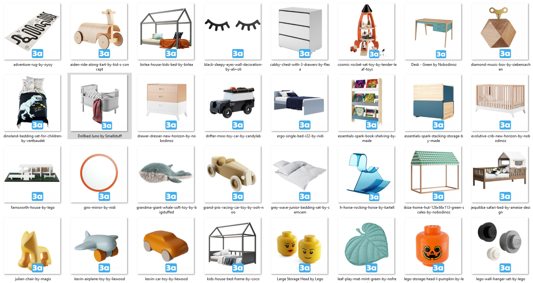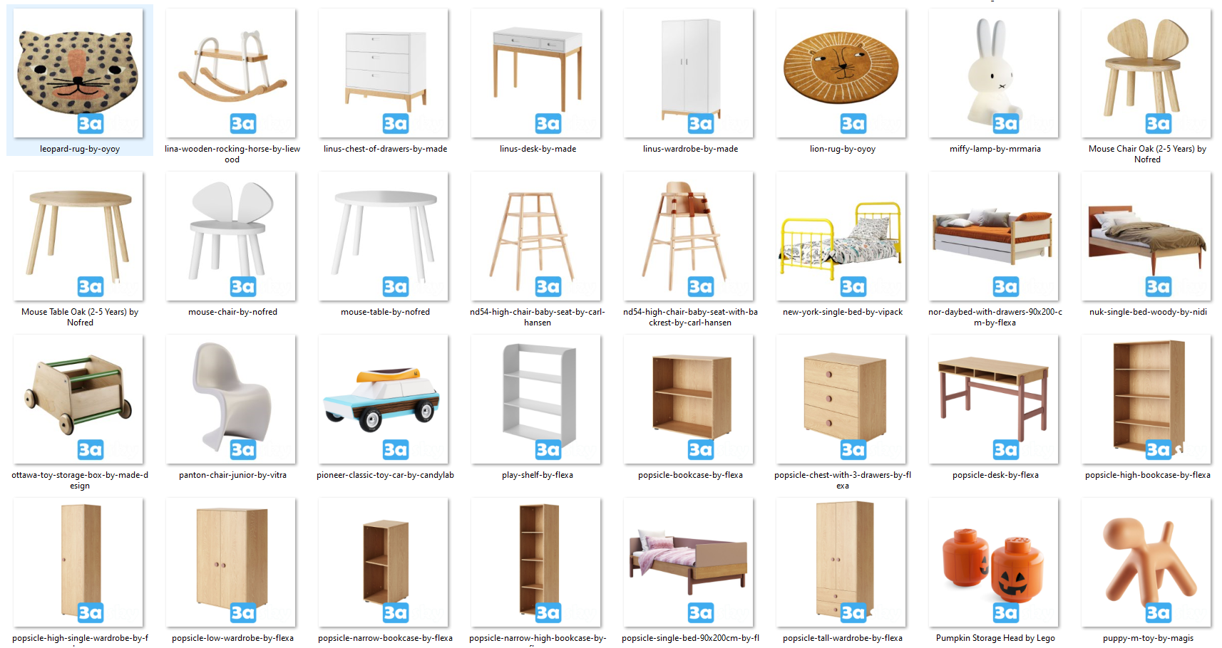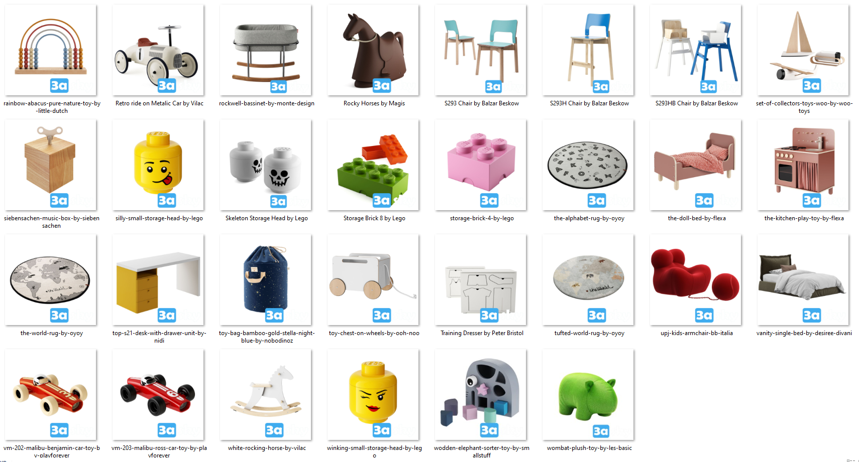 This 3D model preview showcases a collection of high-quality assets designed for kids, created using 3DS MAX software. The vibrant colors and detailed textures make these assets perfect for children's projects and animations. Explore the world of 3D modeling for kids with this captivating preview image.