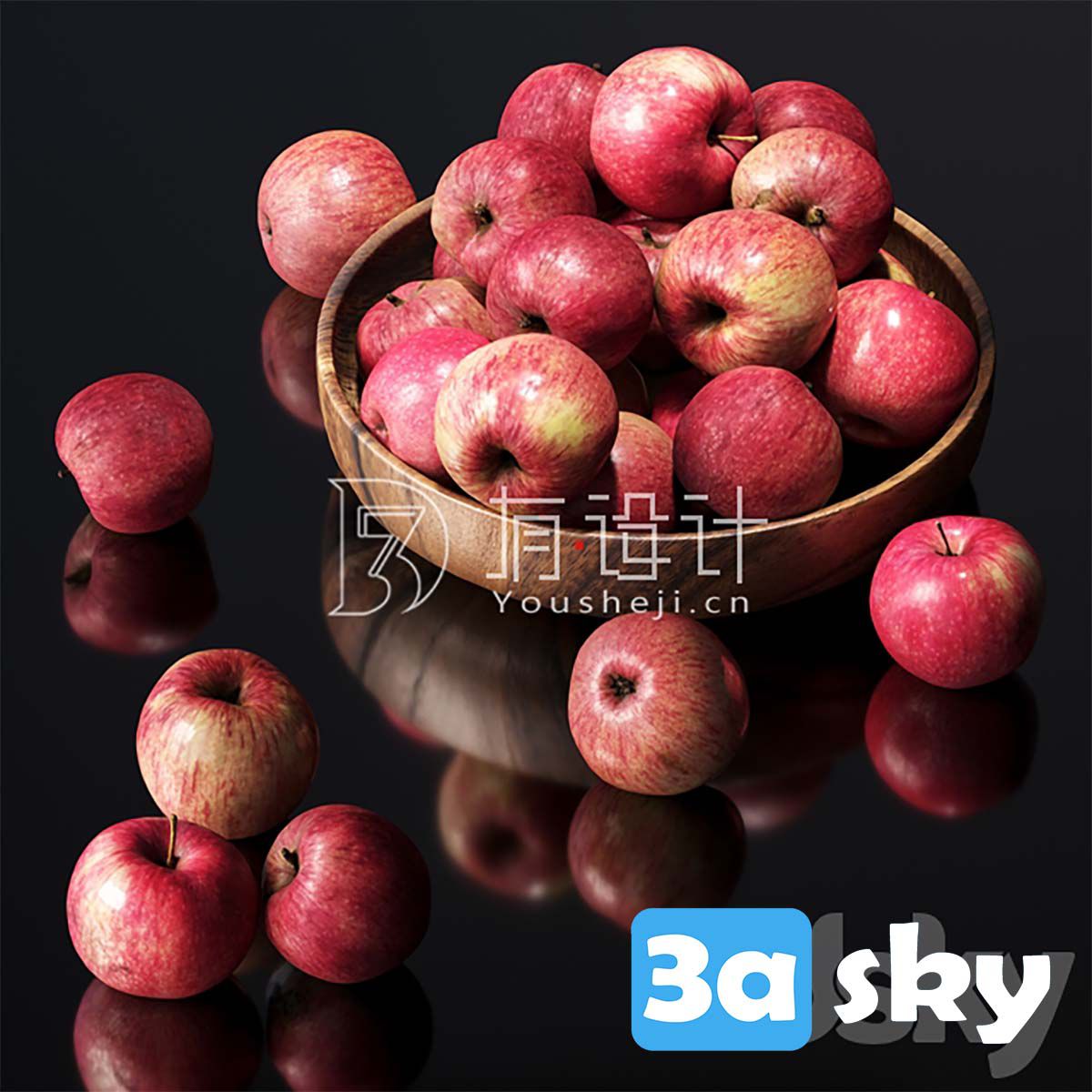 This 3D model showcases a kitchen setting created in 3DS MAX, with a focus on a bowl of apples. The scene is designed to provide a realistic representation of a kitchen environment, highlighting the details of the apples in the bowl. The model can be used for various purposes such as interior design visualization, architectural projects, or product presentations.