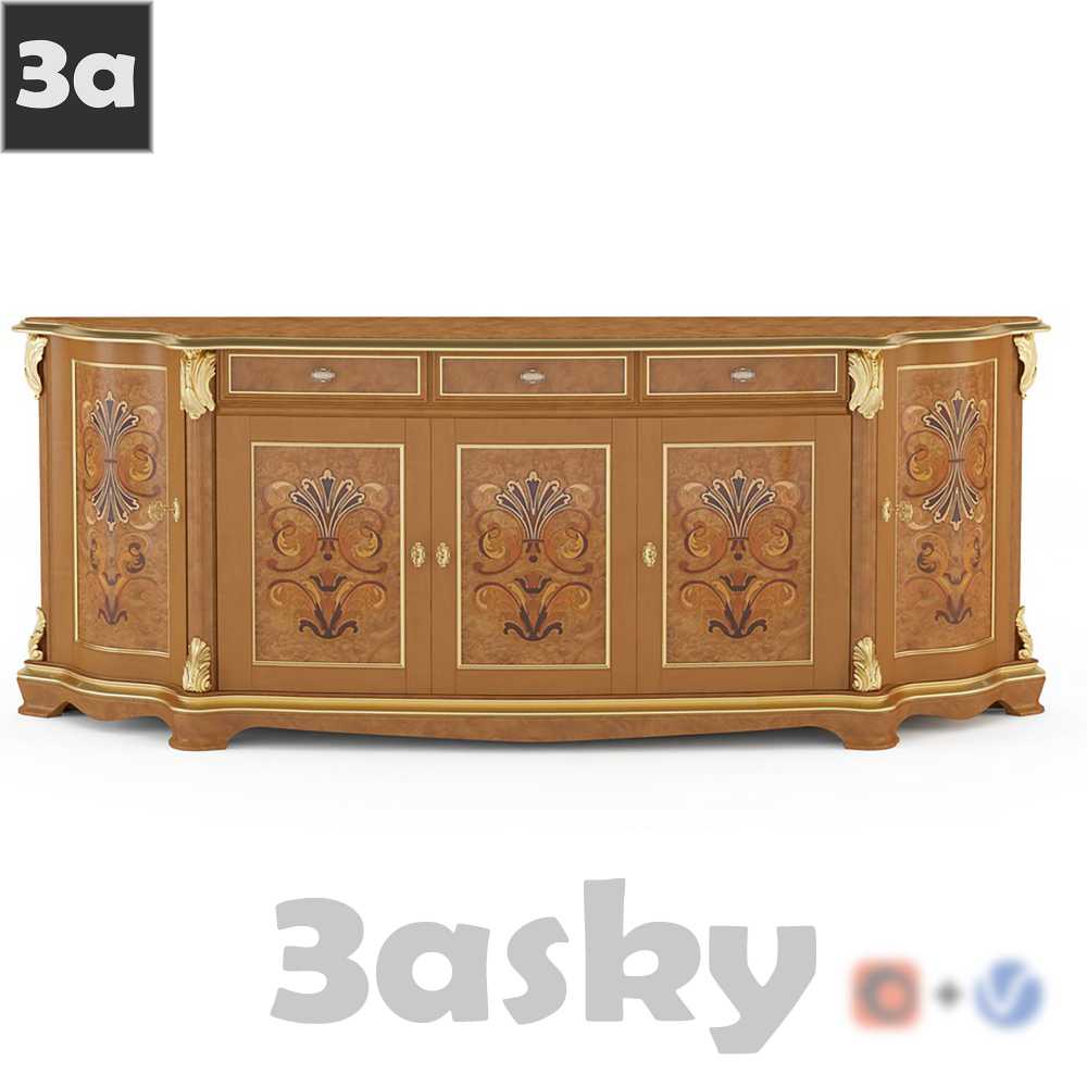 This image showcases a preview of the 5-door sideboard by Modernese Gastone. The design is modern and sleek, perfect for contemporary interiors. The piece features five doors and offers ample storage space. The craftsmanship and attention to detail are evident in this furniture model.