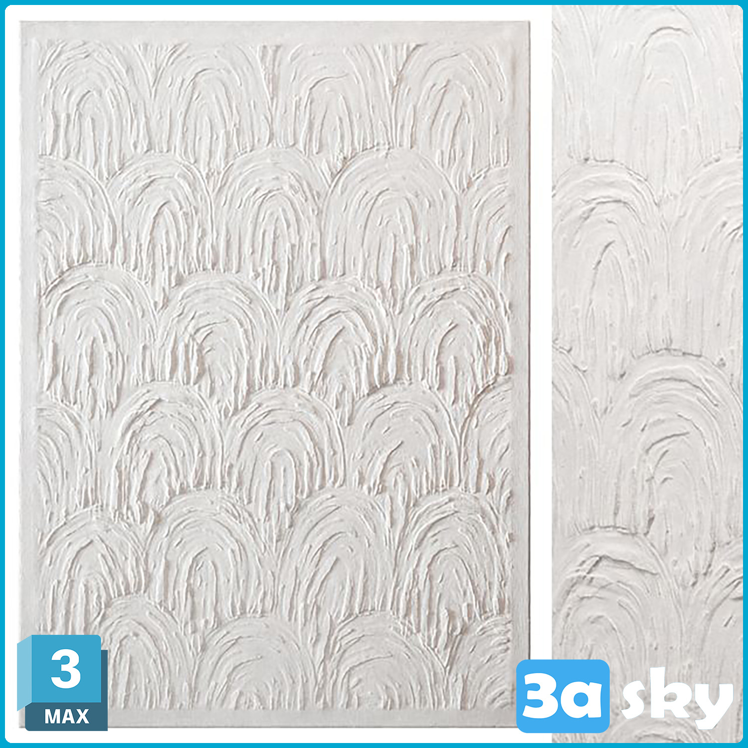 This 3D model features an abstract plaster decoration, suitable for enhancing interior spaces. The intricate design and texture of the plaster add a unique touch to any project. Ideal for use in architectural visualization, interior design, and decoration projects.