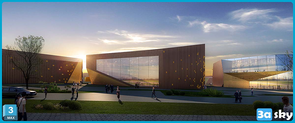 This 3D scene features the AECOM building, a modern architectural marvel, created using 3DS MAX software. The design showcases intricate details and a contemporary aesthetic. Explore the digital representation of this impressive structure for architectural visualization purposes.