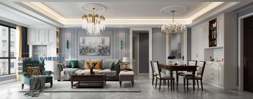 This 3D scene features an American style Corona model. It is a high-quality 3DS MAX file that can be used in various design projects. The model showcases intricate details and is perfect for architectural visualization or interior design purposes.
