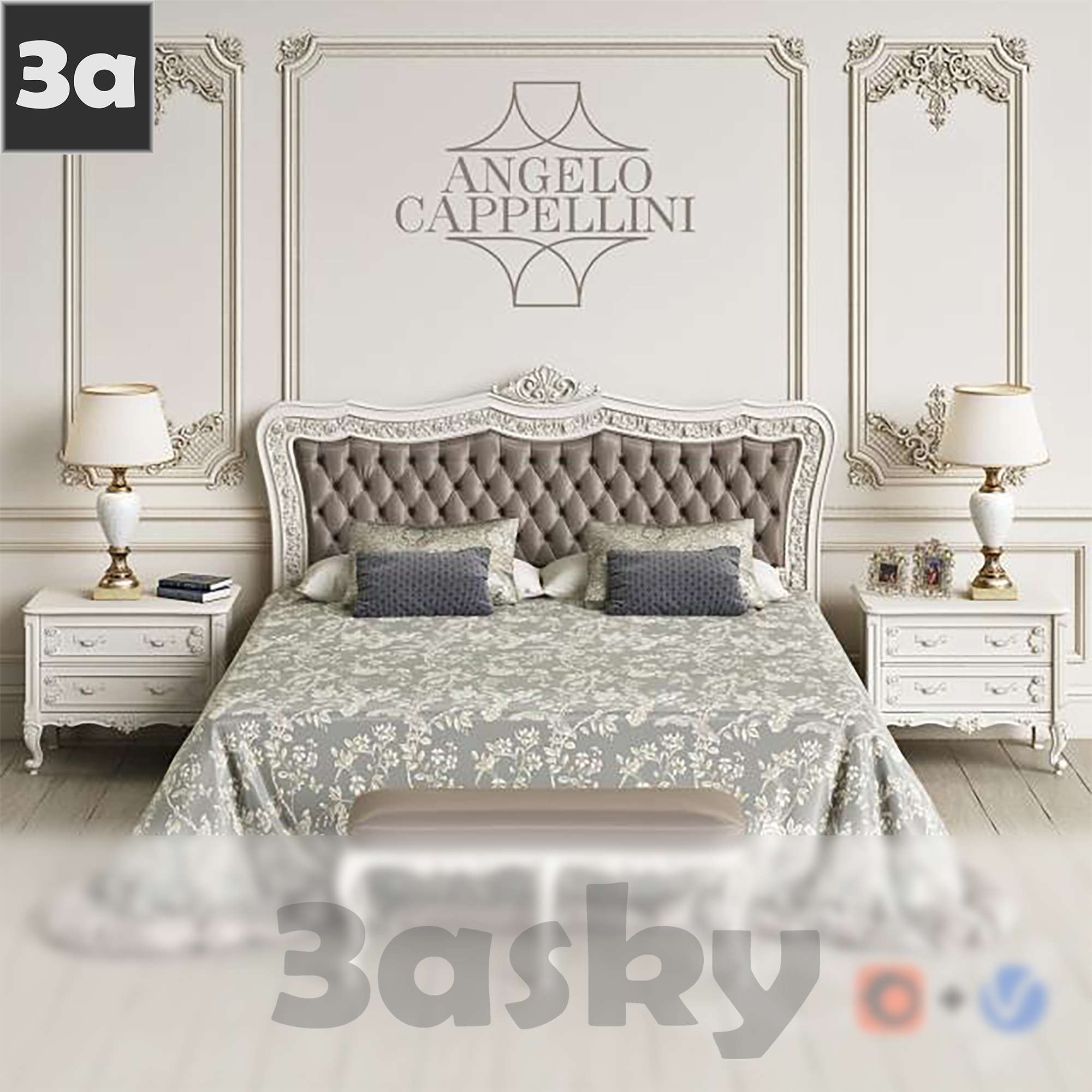This 3D model showcases the elegant and luxurious Angelo Cappellini Itaca Bedroom Furniture. The design features intricate details and high-quality craftsmanship, perfect for adding a touch of sophistication to any bedroom interior. The model is created in 3DS MAX format and is ideal for interior design visualization projects.