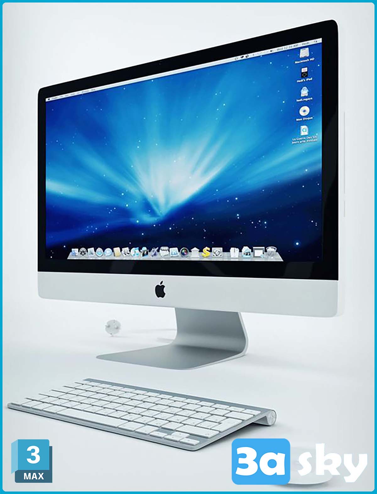 This 3D model showcases an Apple iMac 27 paired with a wireless keyboard, ideal for interior decoration purposes. The model is detailed and realistic, suitable for use in various design projects.