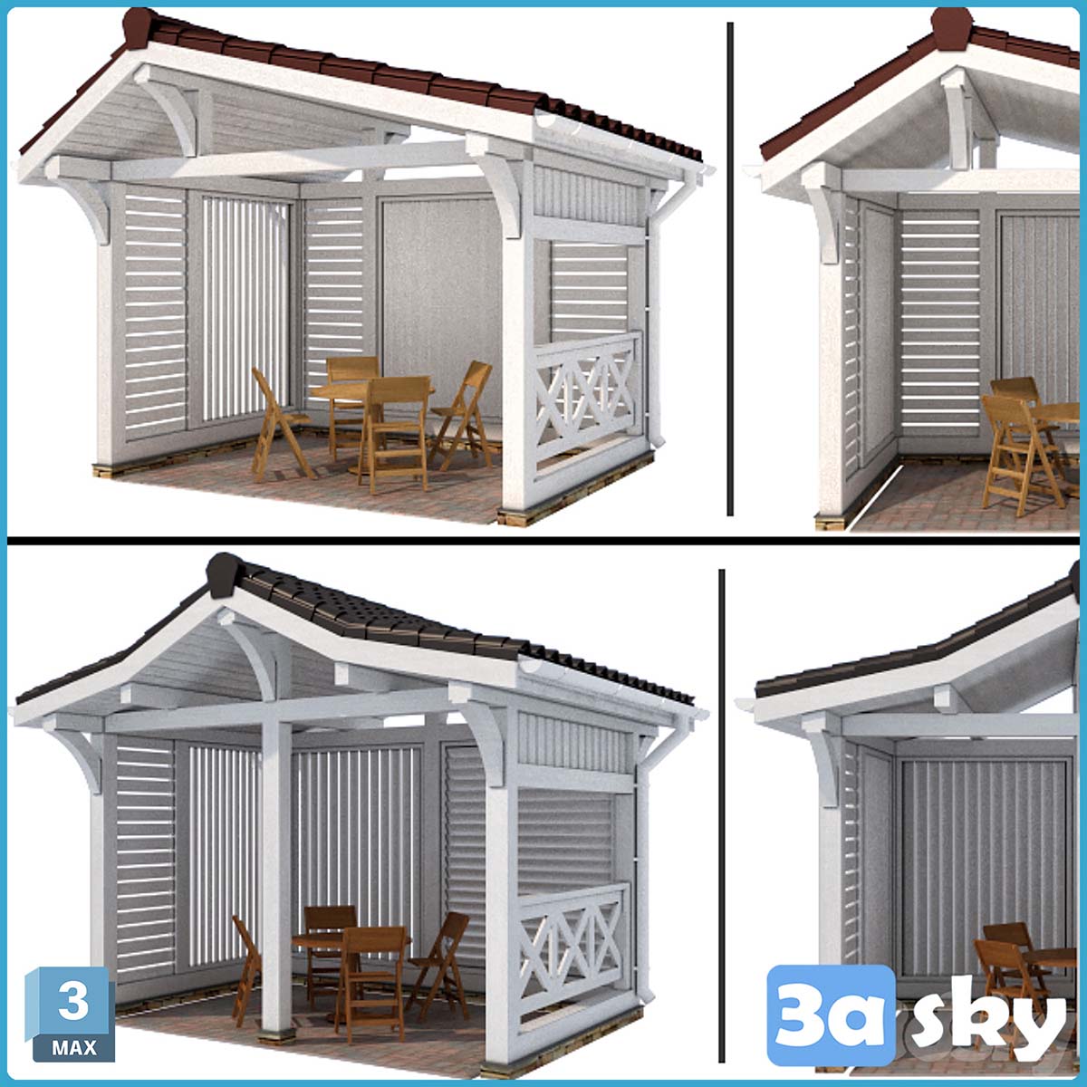 This 3D model features an arbor designed in a modern style, suitable for architectural visualization and design projects. The high-quality rendering showcases the intricate details of the structure, making it ideal for outdoor settings. Download this 3DS MAX architecture model to enhance your design portfolio.