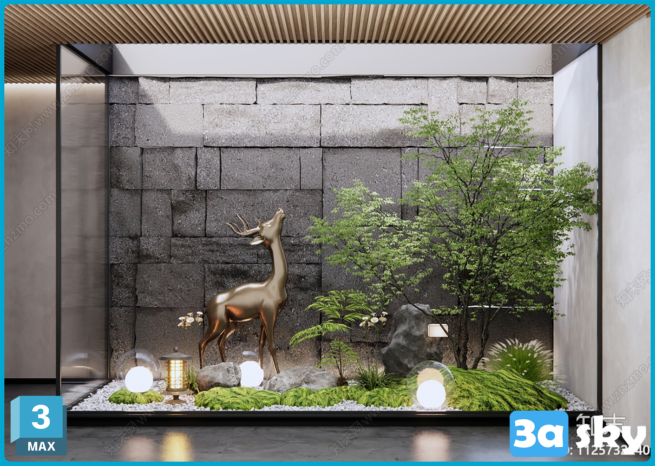 F_现代景观造景_天井景观_石皮墙_乔木_室内植物景观3D模型ID_1125732240.rar