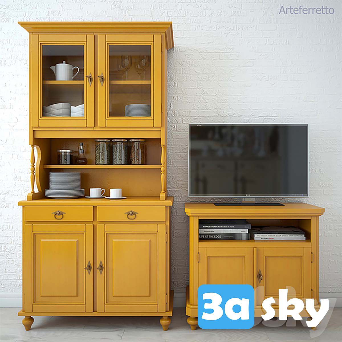 This image features a preview of an elegant ARTEFERRETTO wardrobe and TV stand. The design is stylish and functional, perfect for adding a touch of sophistication to any room. The wardrobe offers ample storage space while the TV stand provides a sleek platform for your entertainment setup. Explore this image to discover the beauty and craftsmanship of ARTEFERRETTO furniture.