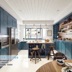 Modern Style Restaurant Kitchen 3D Scene